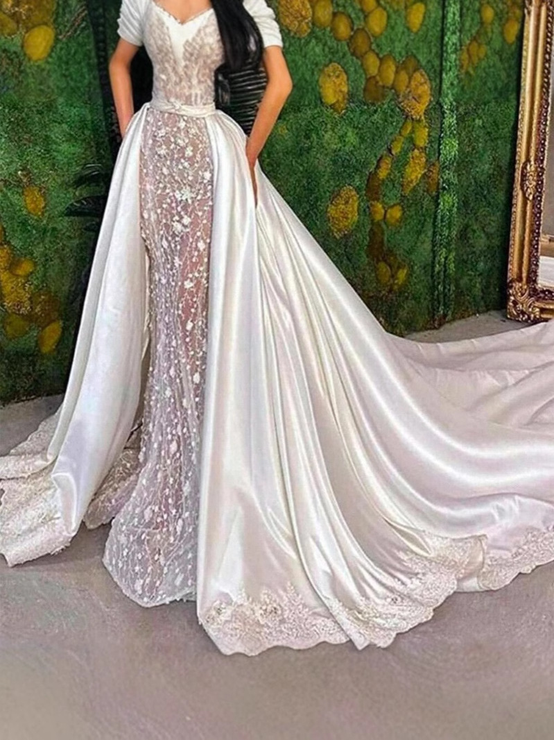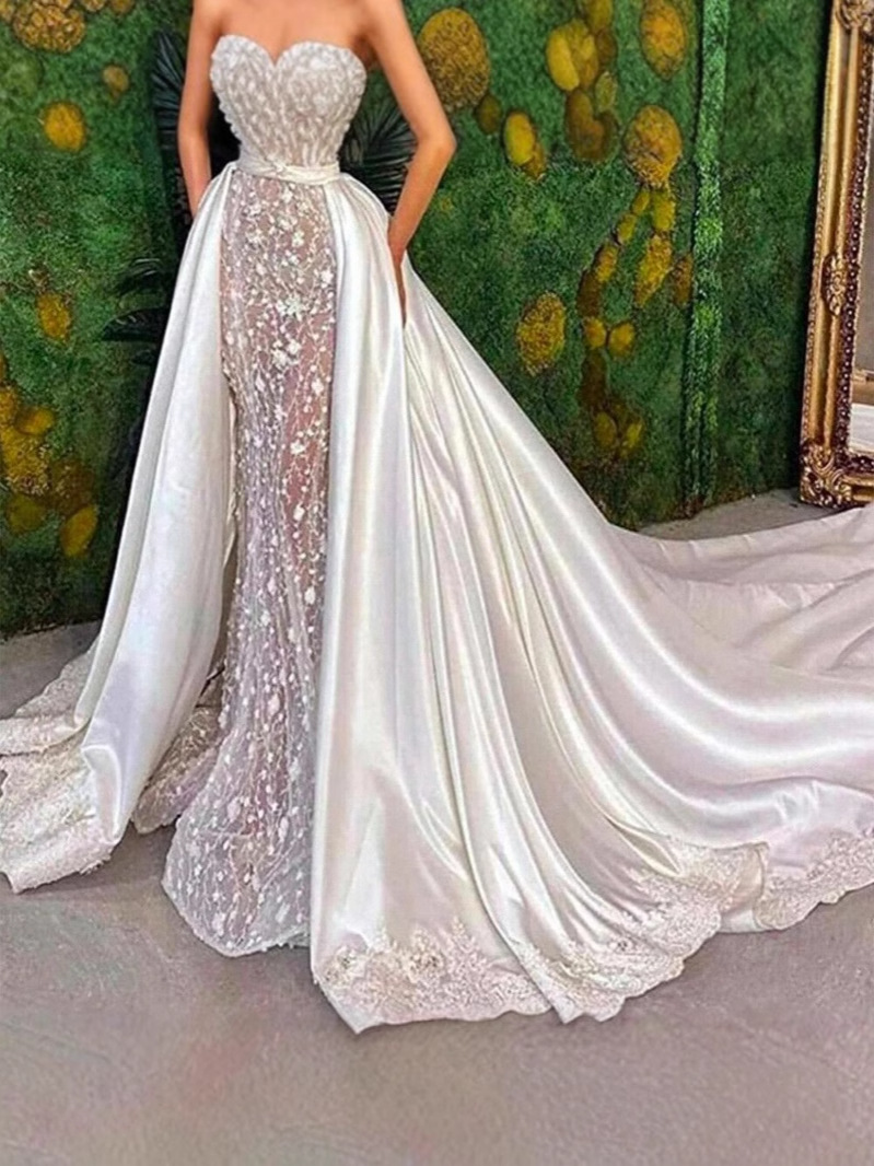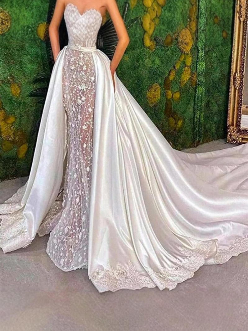 Европейские и американские невесты экспортируют длинный хвост атласный кружево кружево юбка Съемное свадебное платье юбка