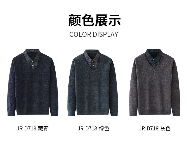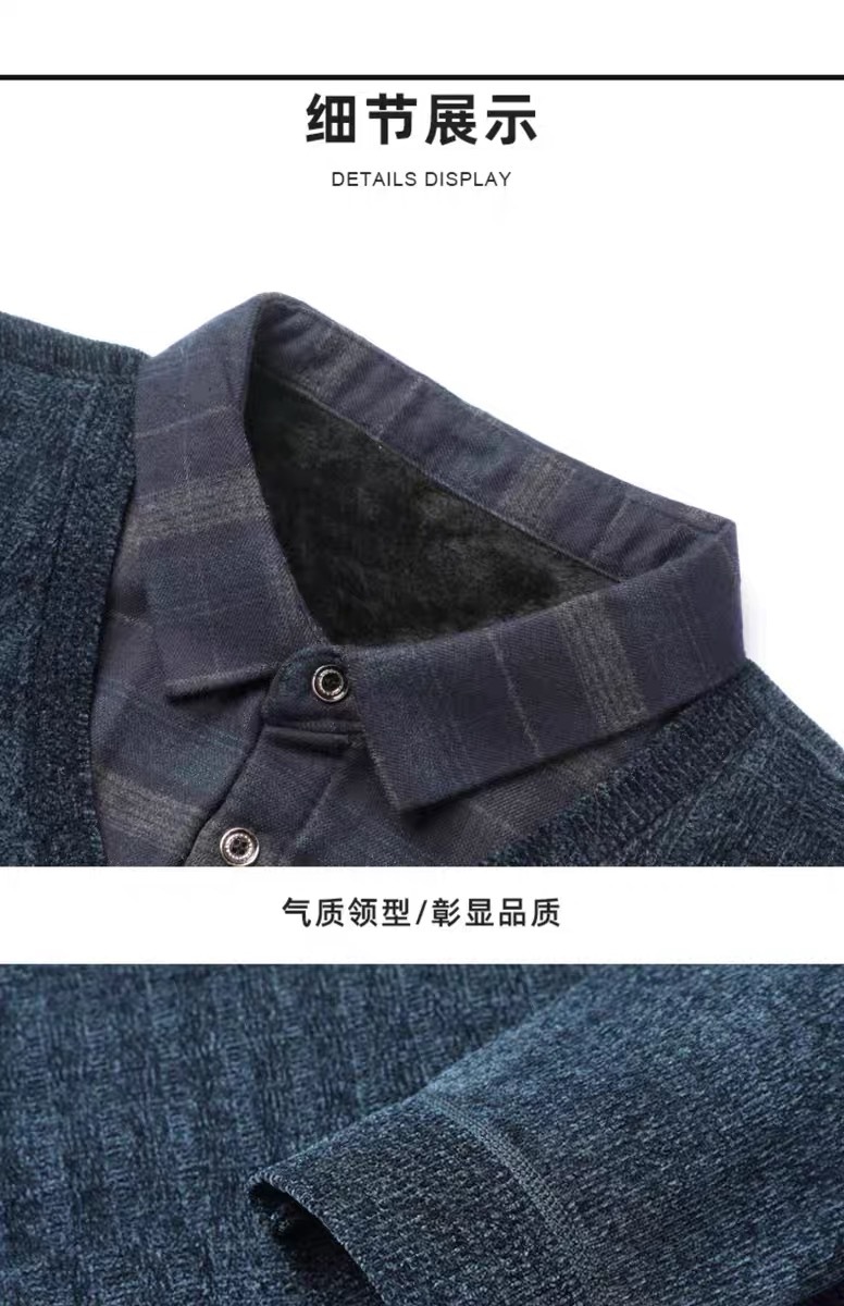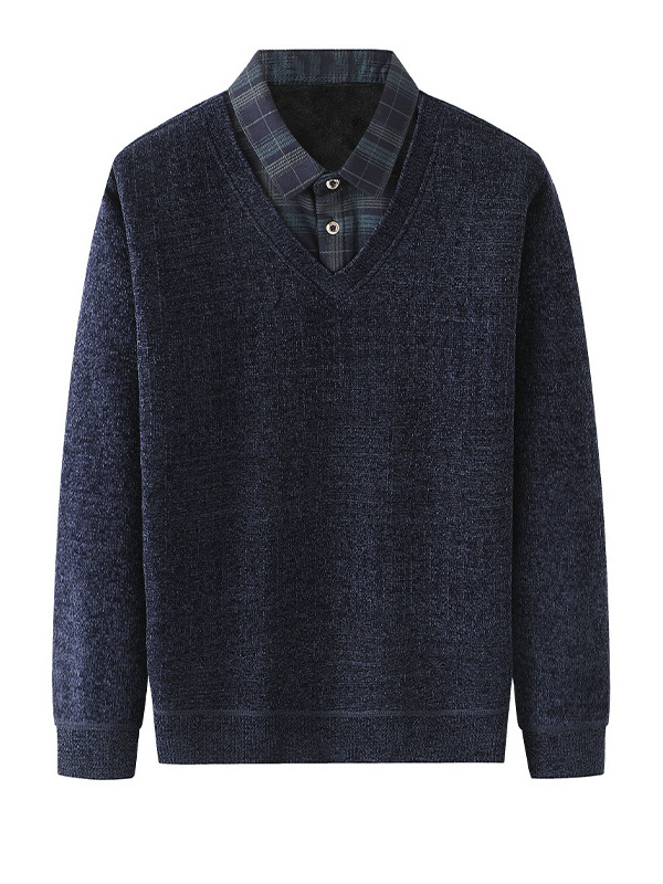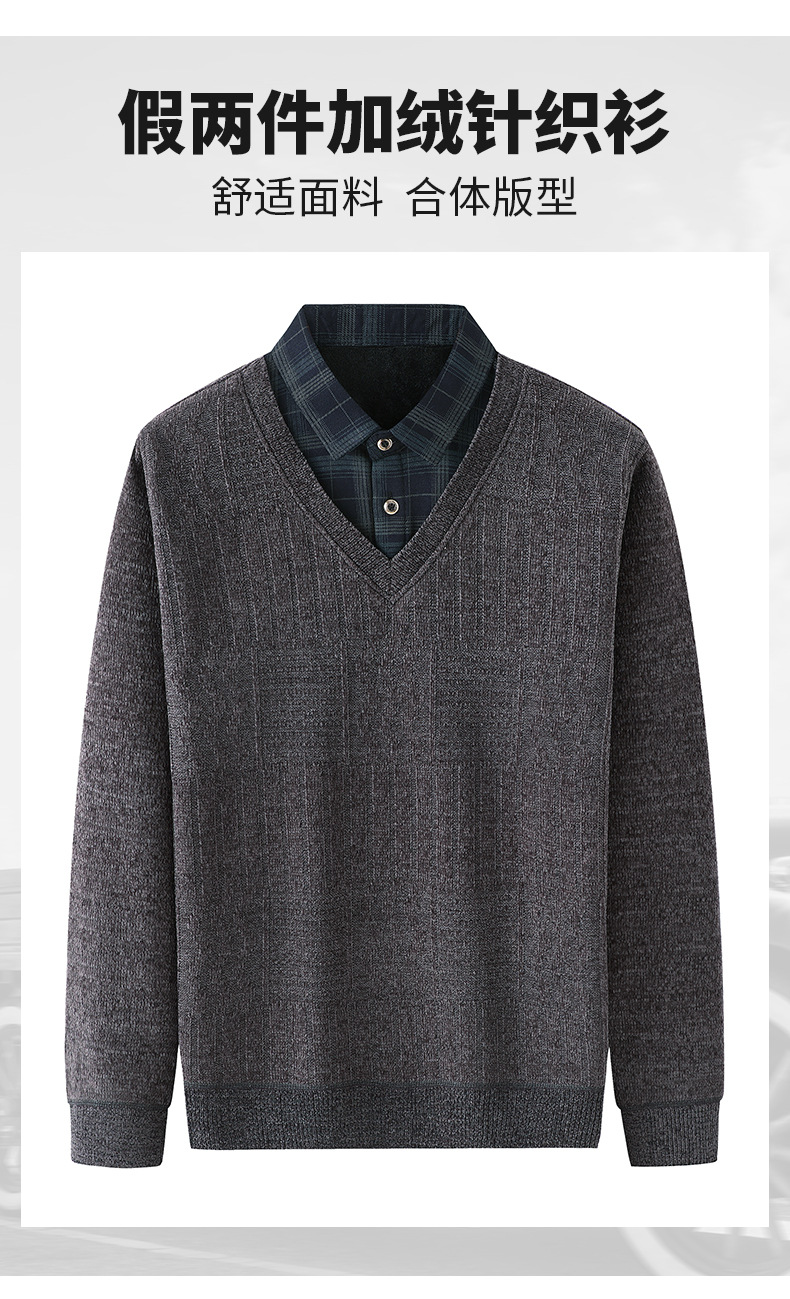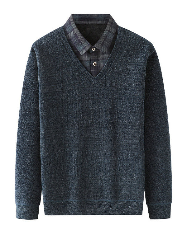 Плюс бархатный теплый свитер поддельные две футболки для пожилых мужчин моды папа зимний новый повседневный толстый нижний свитер