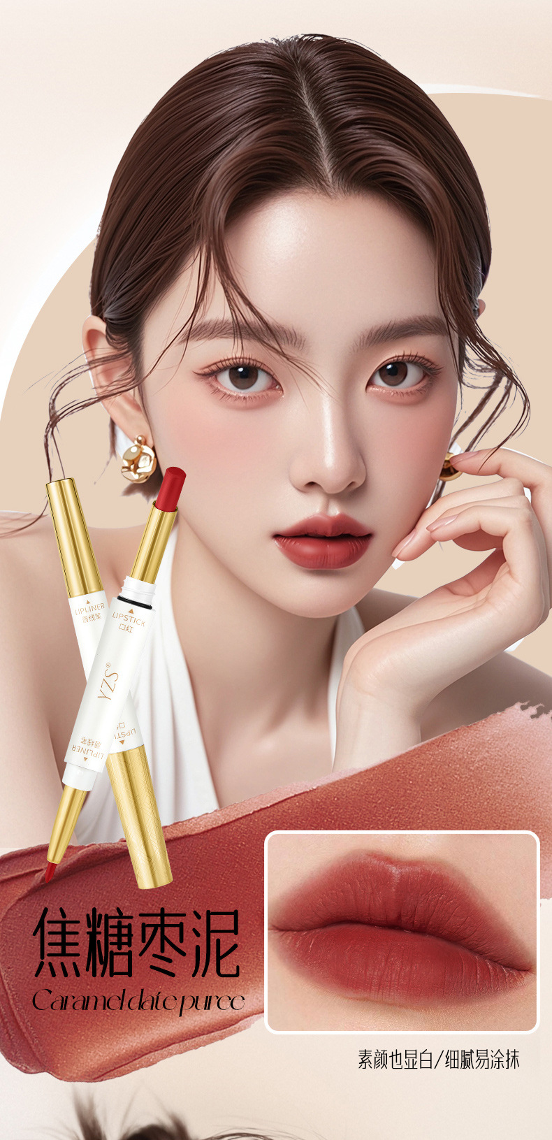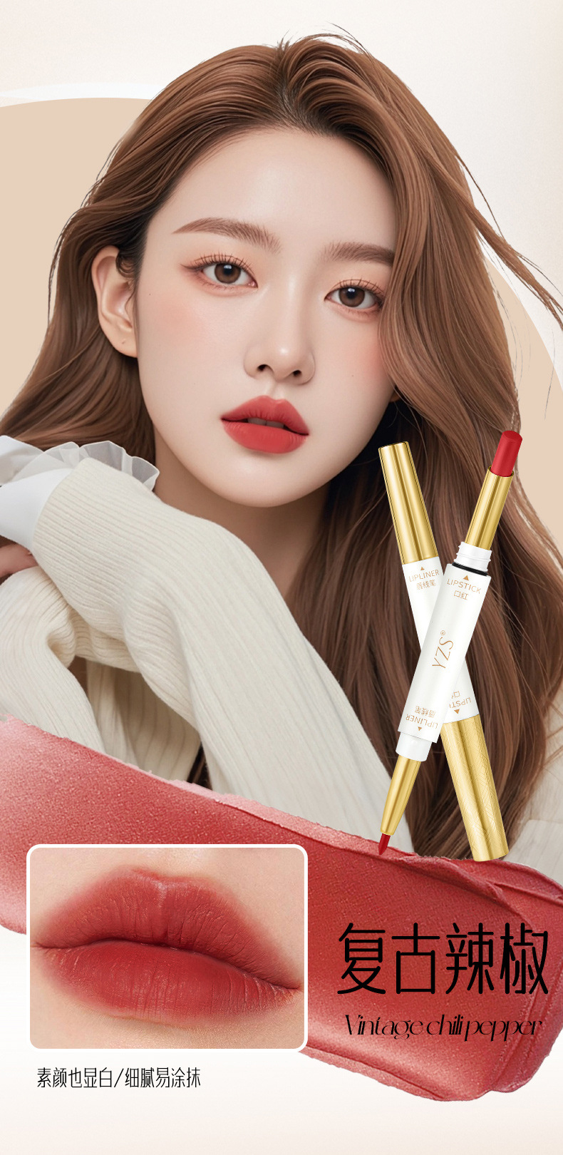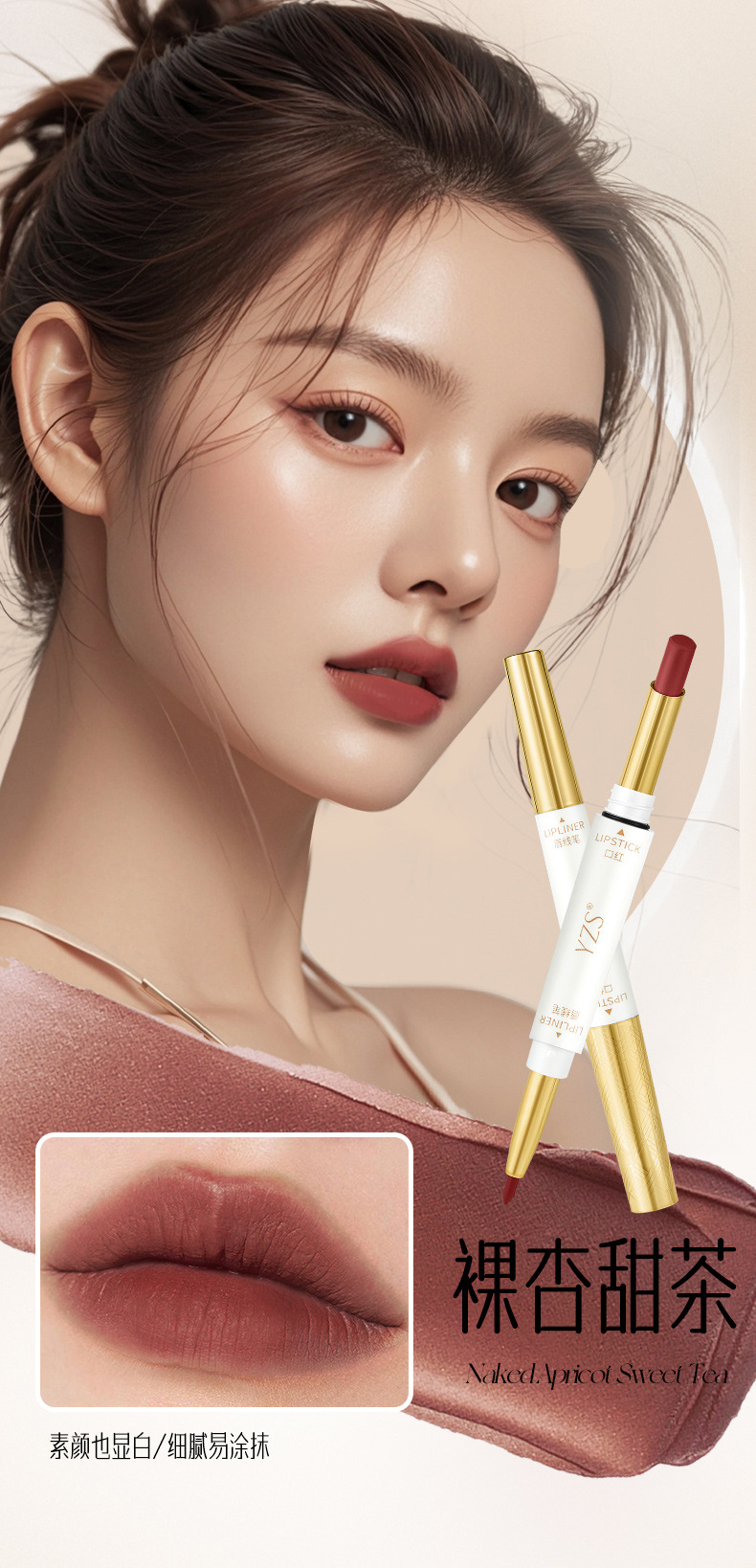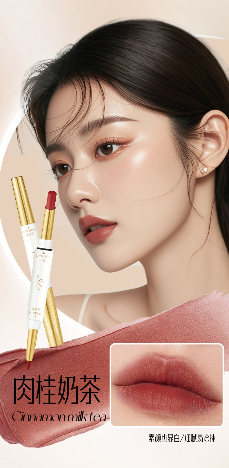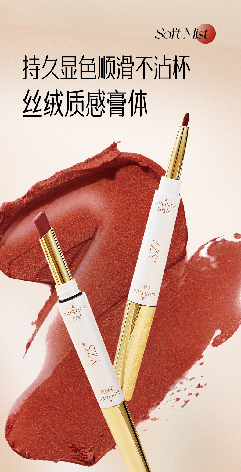 YZS Soft Mist Антипригарная двусторонняя губная помада Lip Liner (Чай с корицей и молоком)