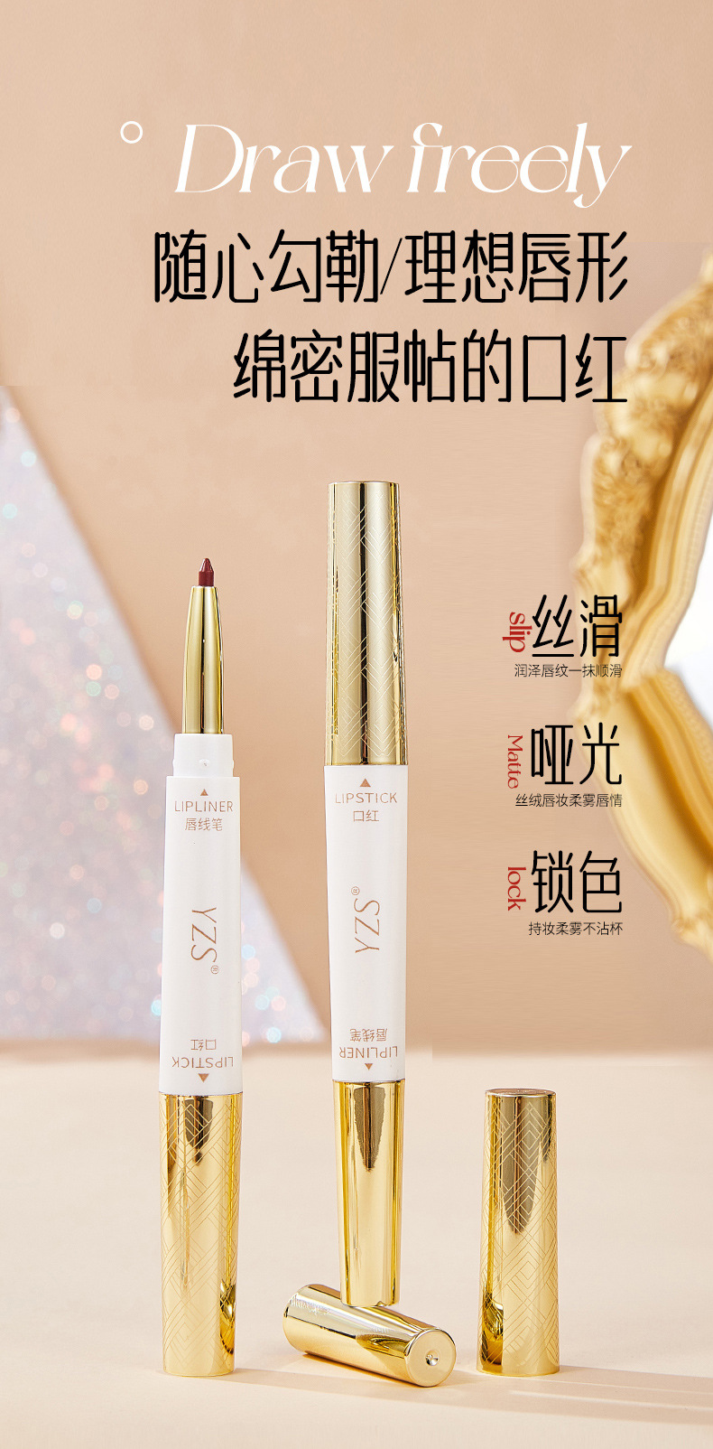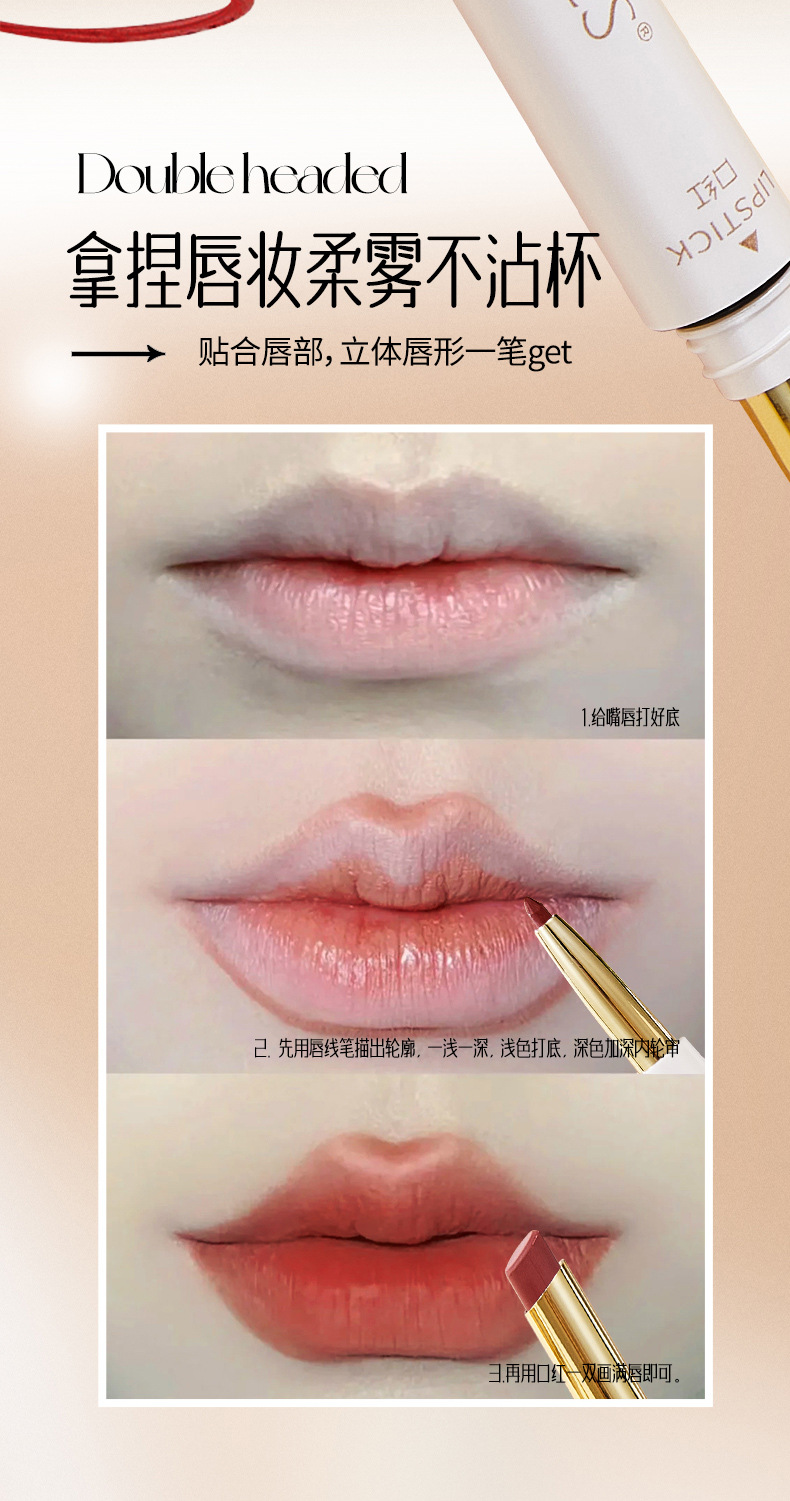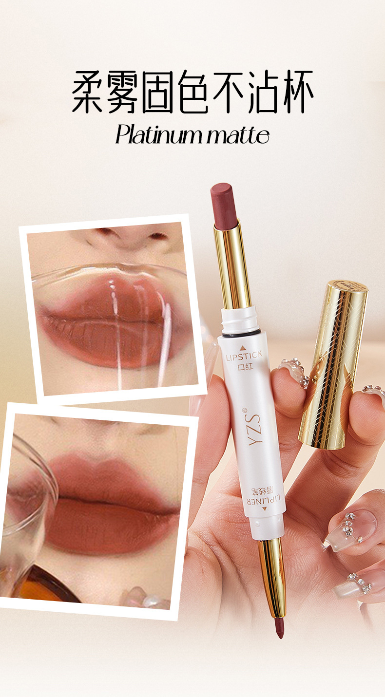 YZS мягкий туман не прилипает к чашке двухголовая губная помада для губной помады.