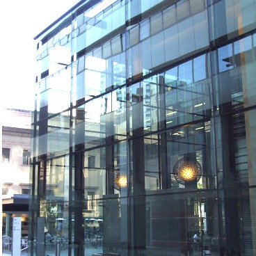 Коммерческое здание с стеклянной фасадной стеной, наружная стеклянная стена, алюминиевый фасадный экран