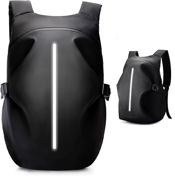 Рюкзак с черным шлемом и одной светоотражающей полосой; Черный рюкзак-шлем с двойными светоотражающими полосами.; Светоотражающая черная сумка для шлема KE letter