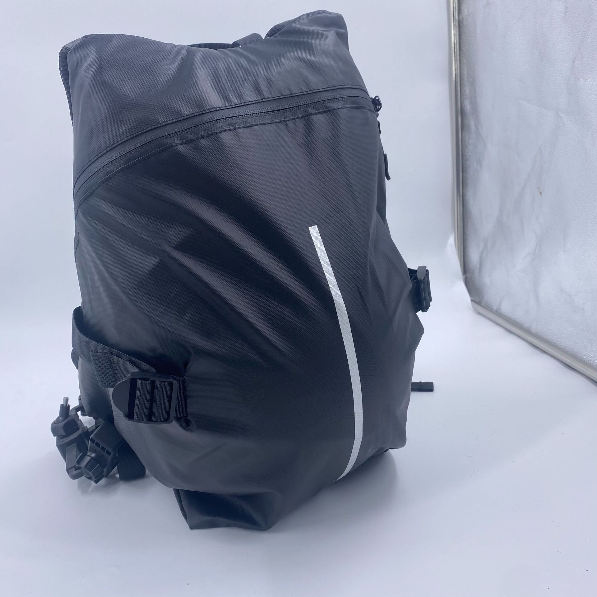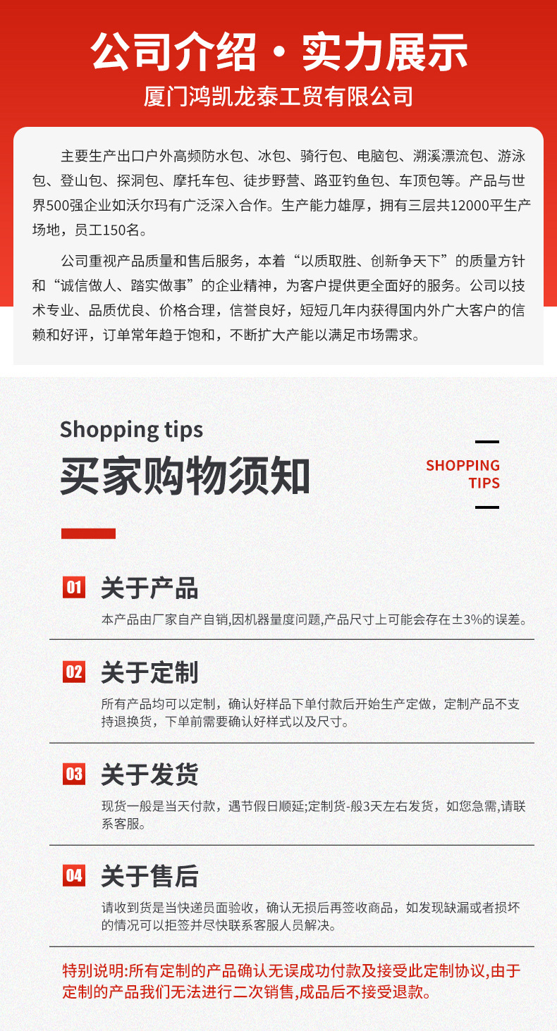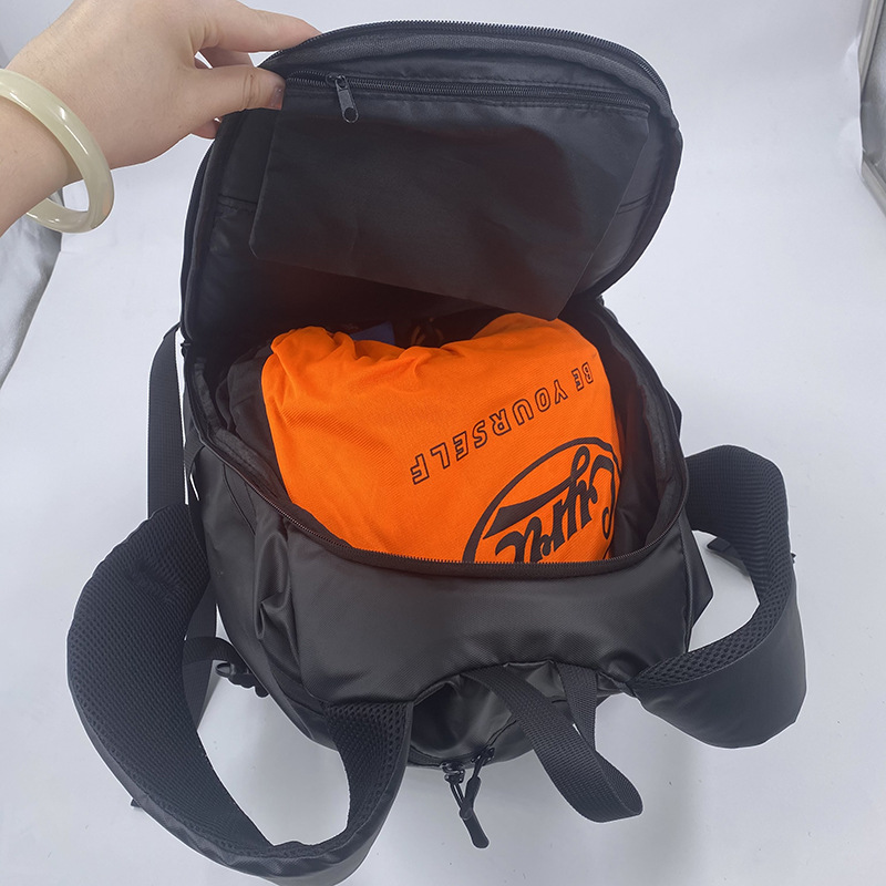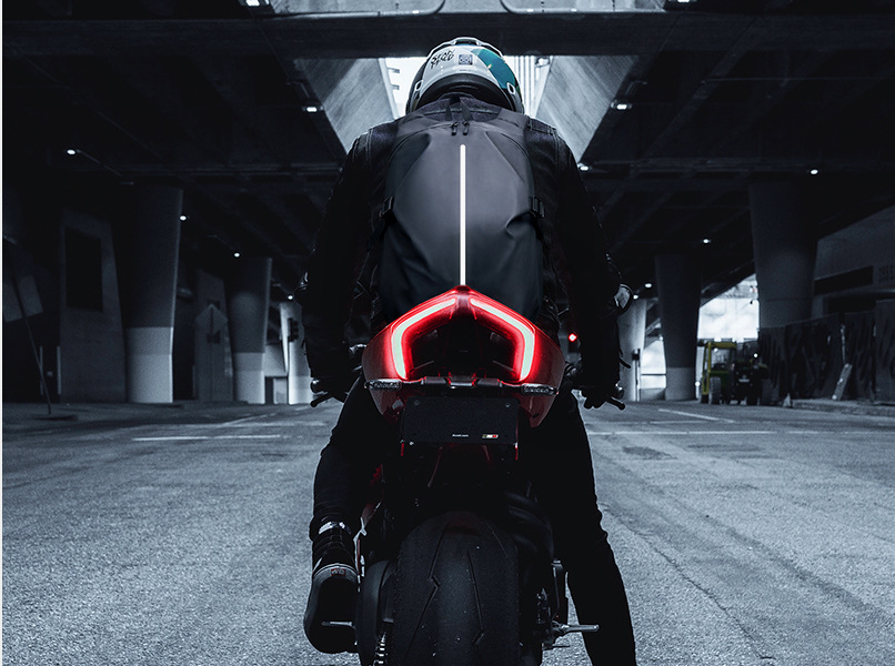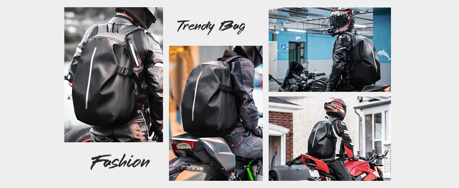 - 4. 背部拉链扣放入头盔,胸前有防滑扣,加厚背部面料,内部肩带一体化面料,透气、实用、美观。双开口,大容量,可放下全盔或者5-7天出行物品。
