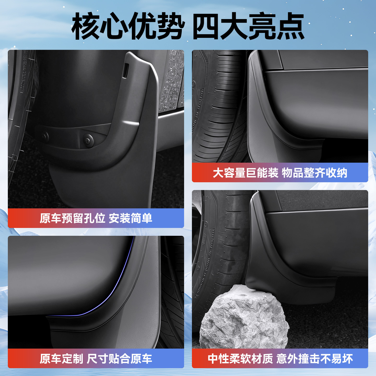 Обновленная модель YL (шестиместная) с четырехколесными брызговиками – 4 шт.; Обновленные крылья для Model Y с четырьмя колесами — 4 штуки; 21-24 старая модель Y, четырехколесные крылья — 4 штуки; Обновленные крылья для Model 3 с четырьмя колесами — 4 штуки; 19-23 старая модель M3, четырехколесные крылья — 4 штуки