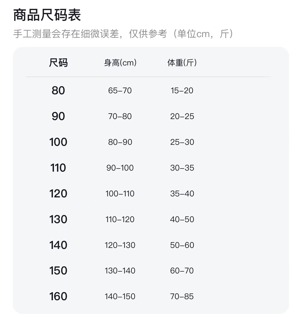 80cm; 90cm; 100cm; 110cm; 120cm; 130cm; 140cm; 150cm