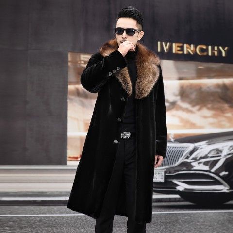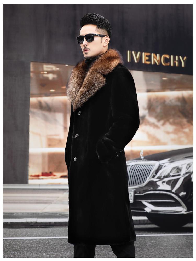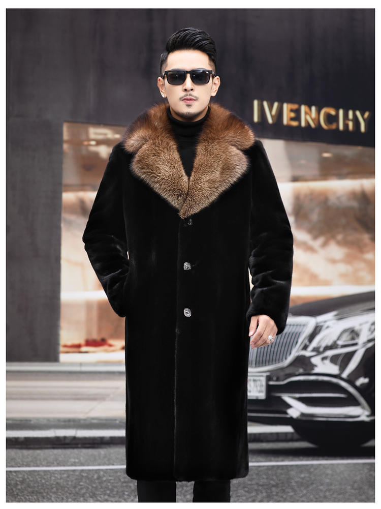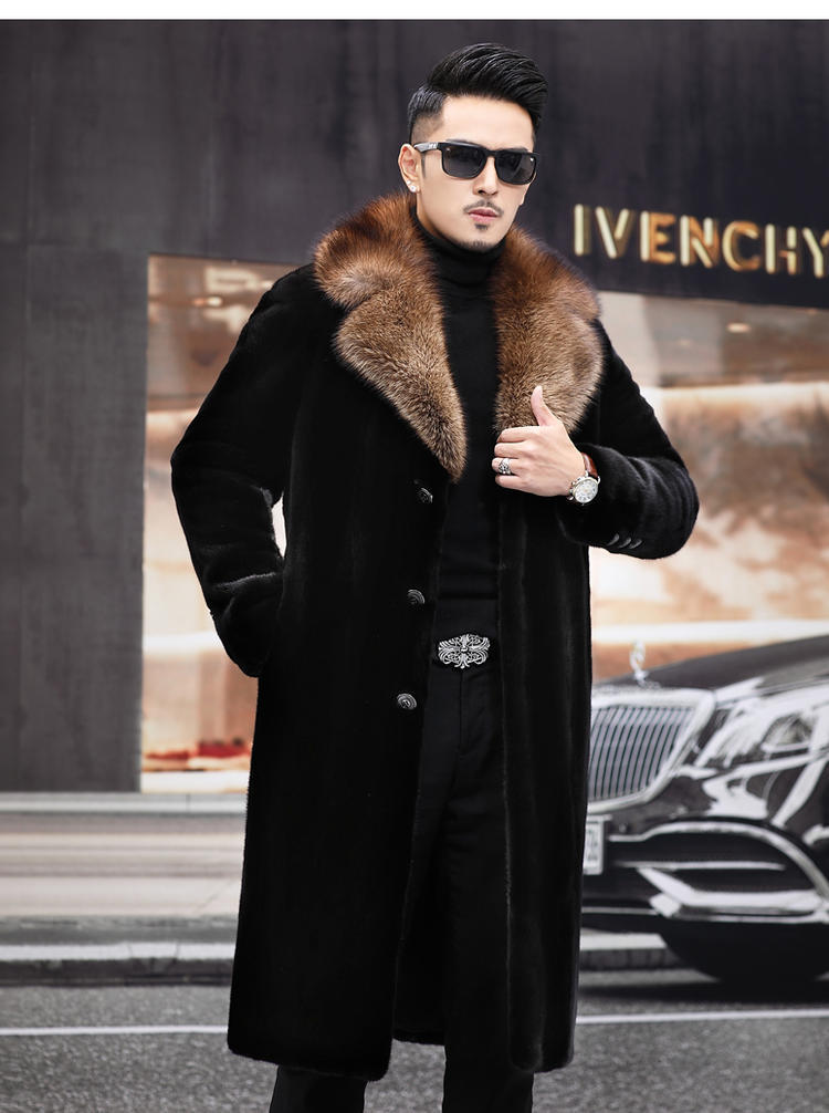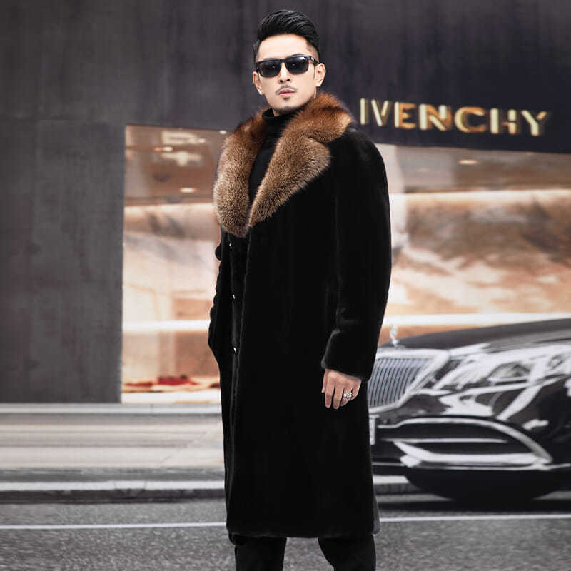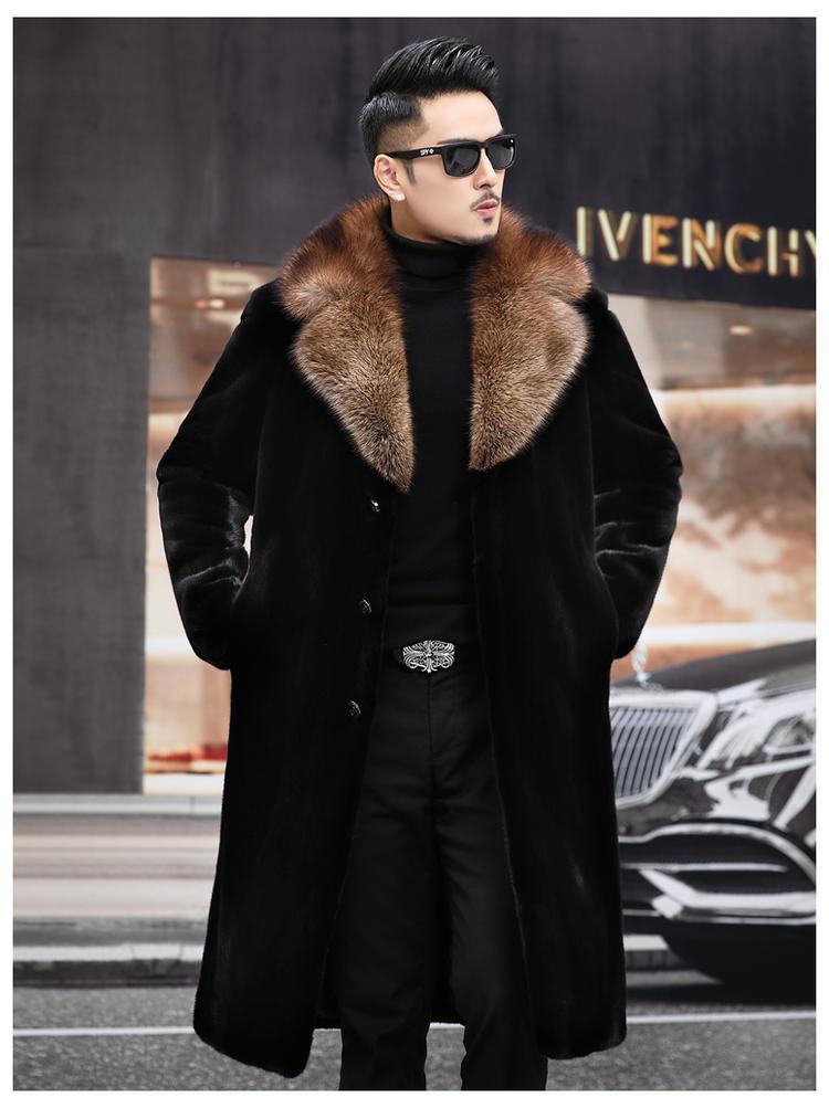 Мужская шуба с капюшоном имитация норковой шубы зимний новый стиль мужская средняя длинная теплая имитация норка шуба для отдыха
