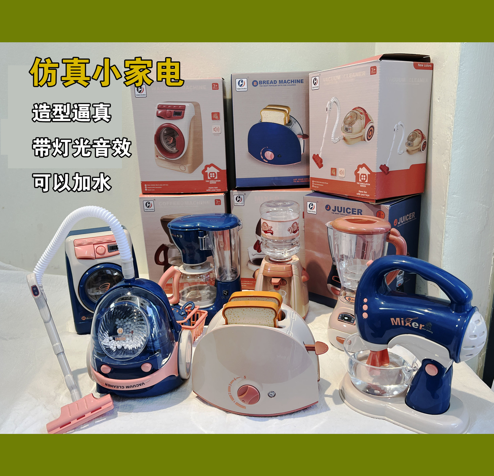 синяя хлебопечка; машина для синего сока; синяя кофемашина; синий пылесос; синий миксер; синяя стиральная машина; Машина для приготовления сливочного хлеба; Машина для приготовления молочного сока; Молочная кофемашина; Кремовый пылесос; Кремовый миксер; Стиральная машина кремового цвета; Диспенсер для сливок; Кремовая печь; синяя духовка; Портативный чайник кремового цвета.; Большой барабанный миксер кремового цвета; Кремовая швейная машина; Кремовый большой чайник; Кремовая большая плита + холодильник + аксессуары; Соковыжималка + кофемашина + аксессуары; Хлеб + миксер + аксессуары; Стиральная машина + пылесос + небольшой утюг.; Синий холодильник, световые и звуковые эффекты; Кремовый спрей для холодильника со световыми и звуковыми эффектами; Маленький вентилятор молочного цвета [зеленый, свяжитесь со службой поддержки клиентов]
