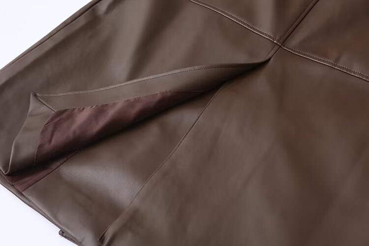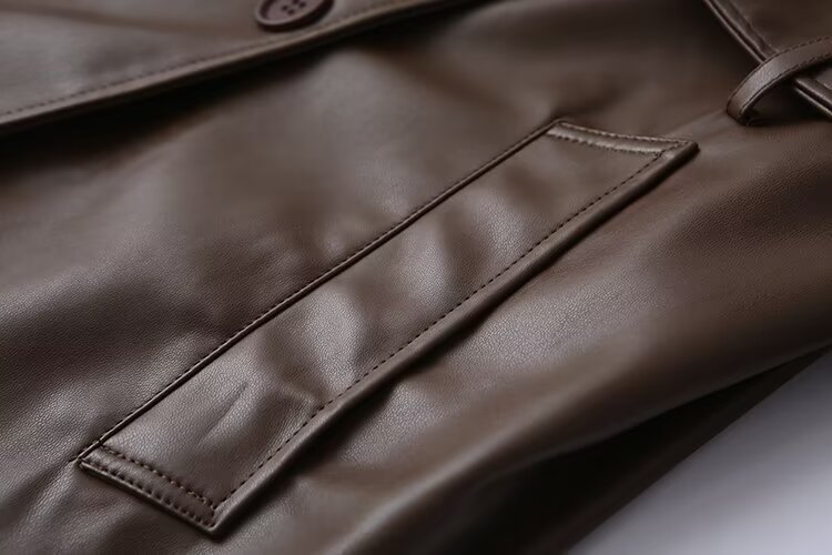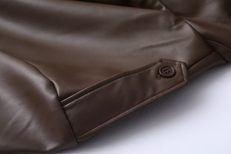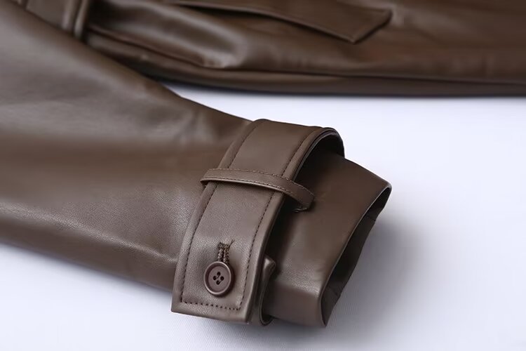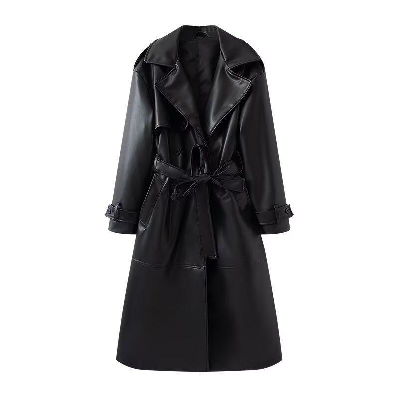 TAOP & ZA новая осенне-зимняя женская однотонная элегантная талия для похудения модная длинная кожаная ветровка женская средней длины в стиле Хепберн