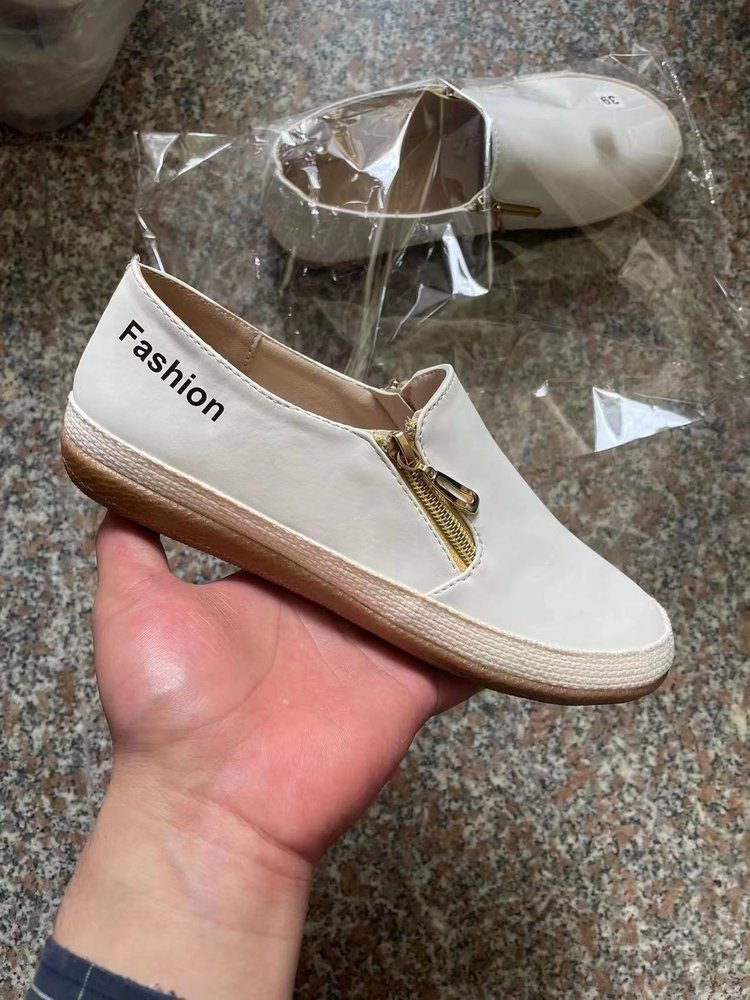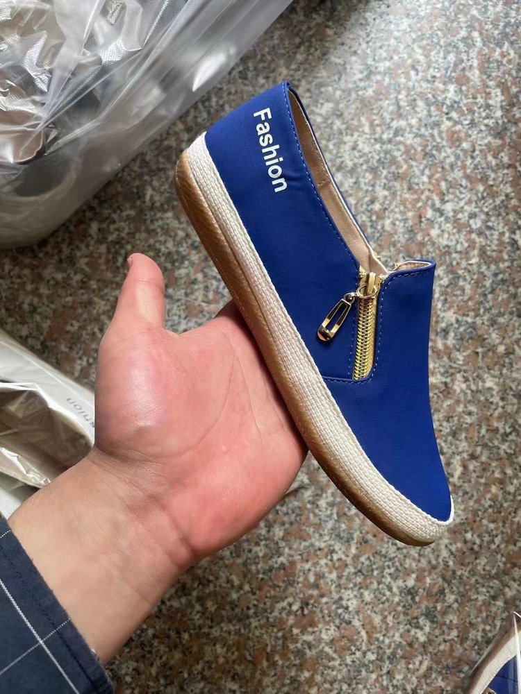 Новые повседневные одиночные женские туфли большого размера на молнии, весна и осень 2024, европейские и американские однотонные женские парусиновые туфли на платформе с подошвой из пеньковой веревки