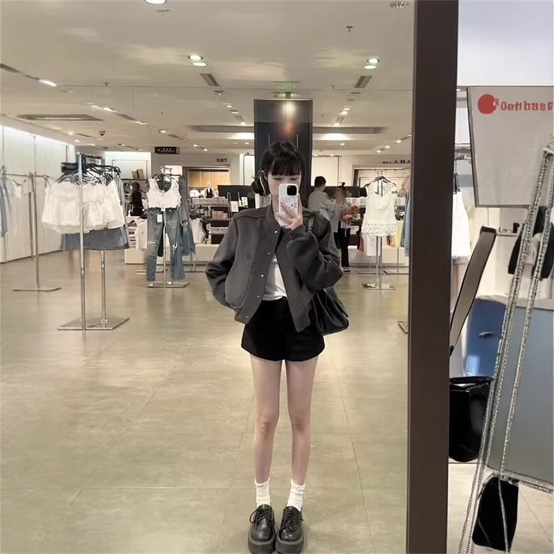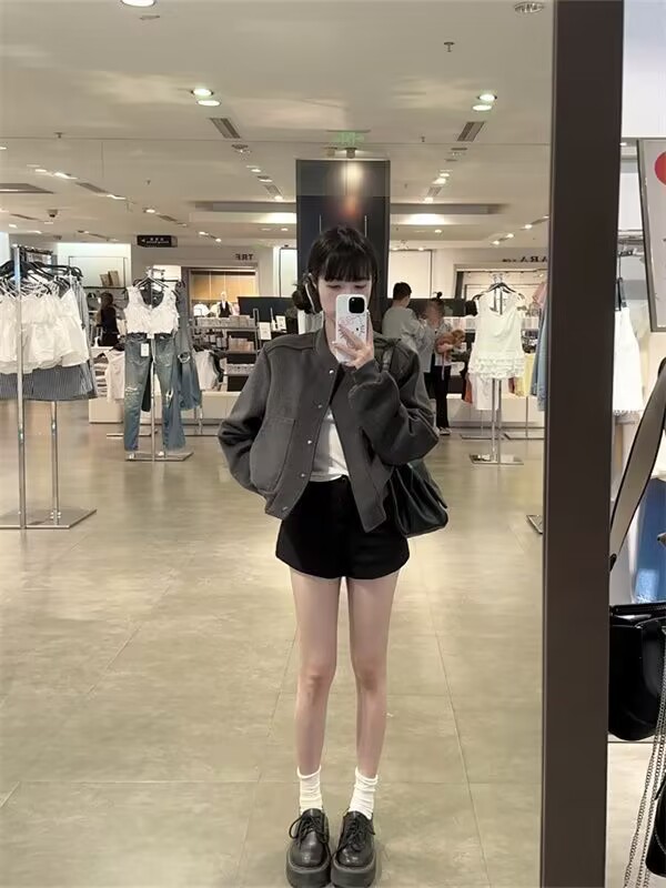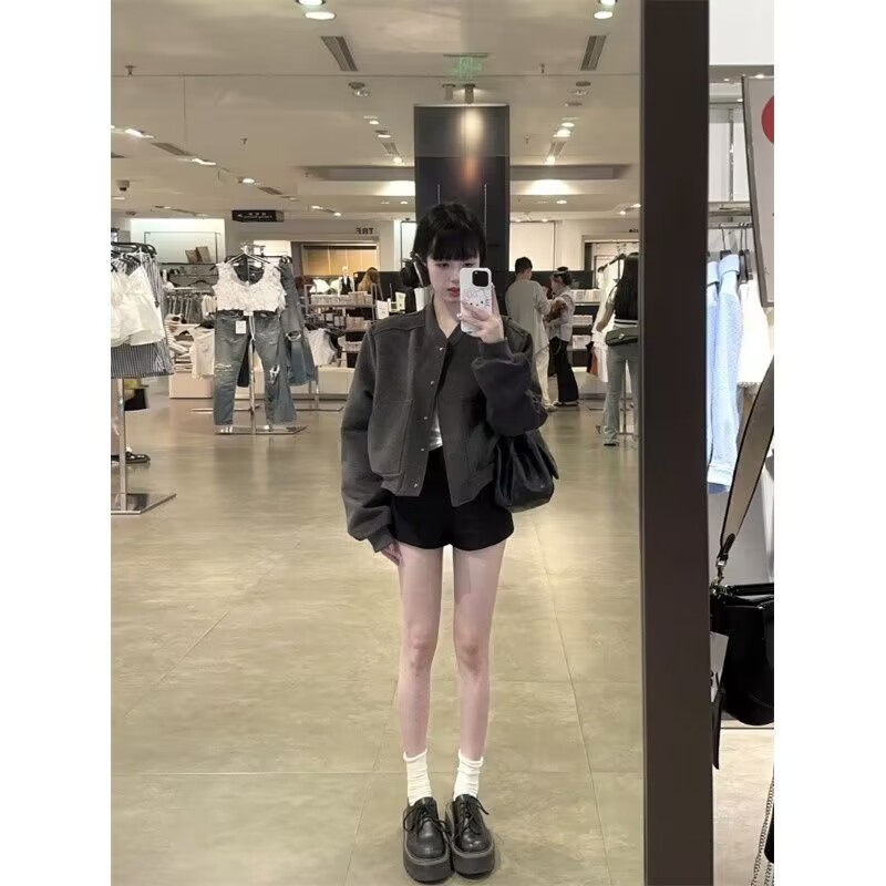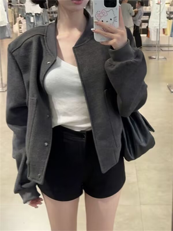 Короткая верхняя одежда цвета хаки для женщин, осень 2024, новый дизайн, бейсбольная форма, персонализированная свободная однотонная куртка-кардиган