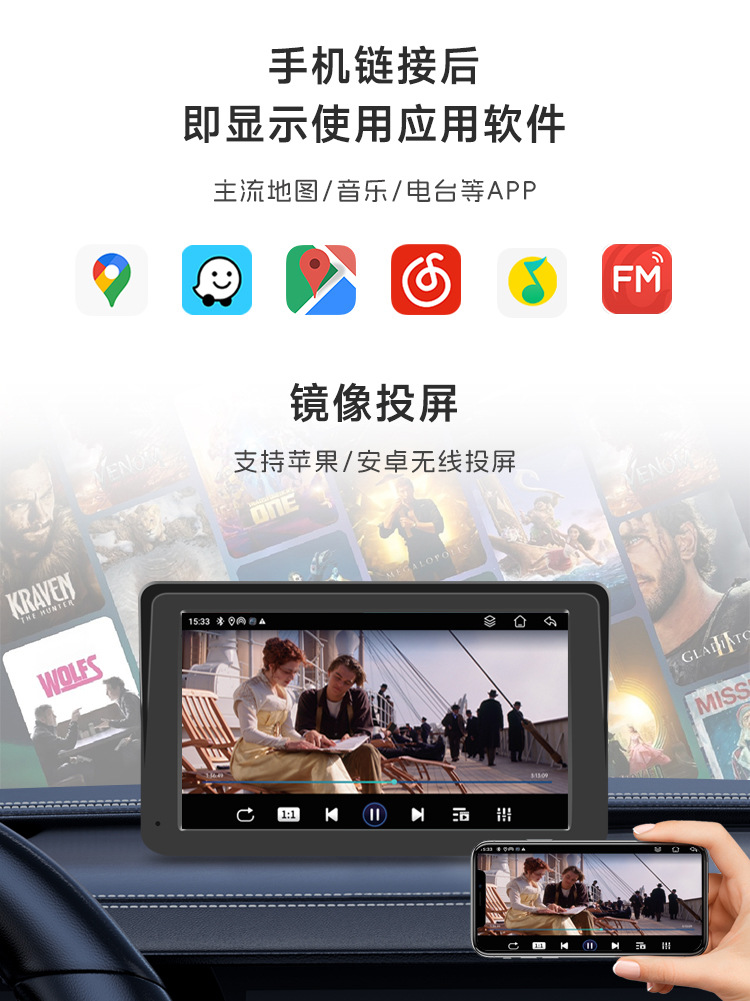 7-дюймовый удобный Apple Carplay Android Auto Автомобильная навигация Музыка Видео Двойной рекордер до и после проекции экрана