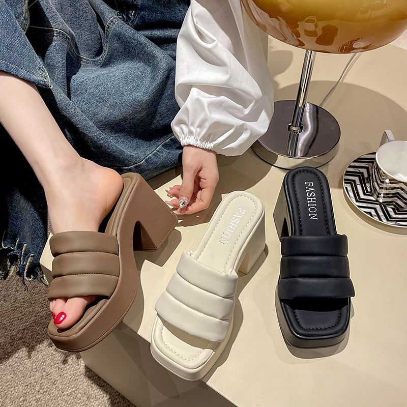 Новинка лета 2024, водонепроницаемые босоножки и тапочки на высоком каблуке и платформе, нескользящие износостойкие женские тапочки на толстой подошве с защитой от запаха