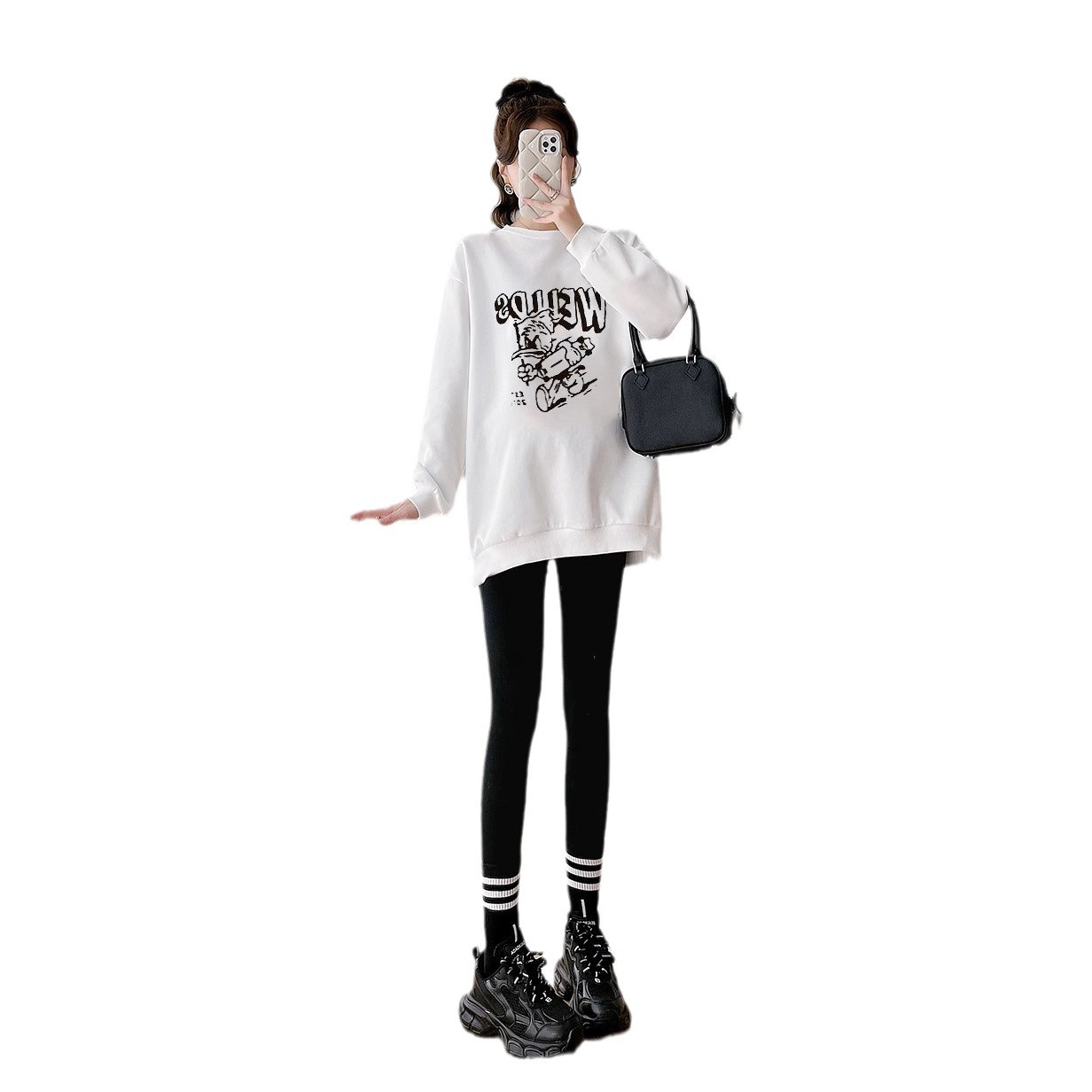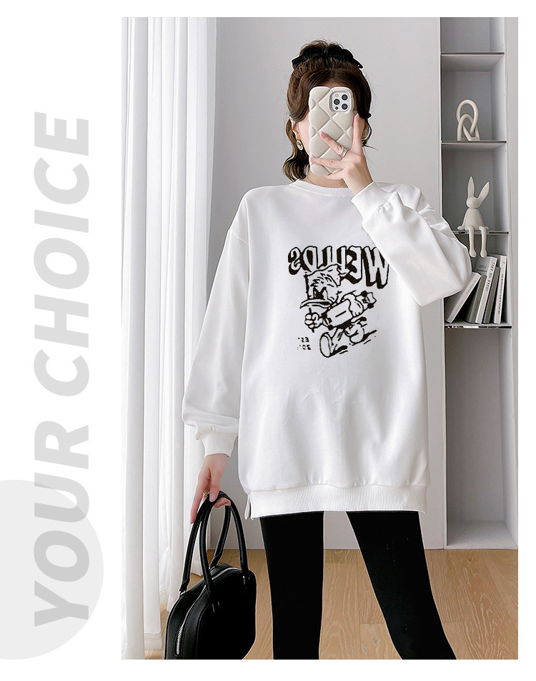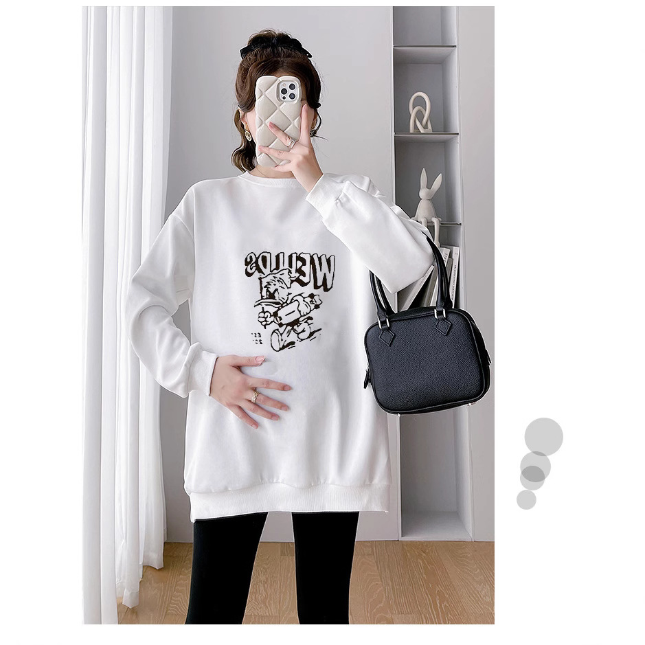 Одежда для беременных Осень и Зимняя Одежда свитеров Женская 2024 Большой размер свободный мультяшный принт