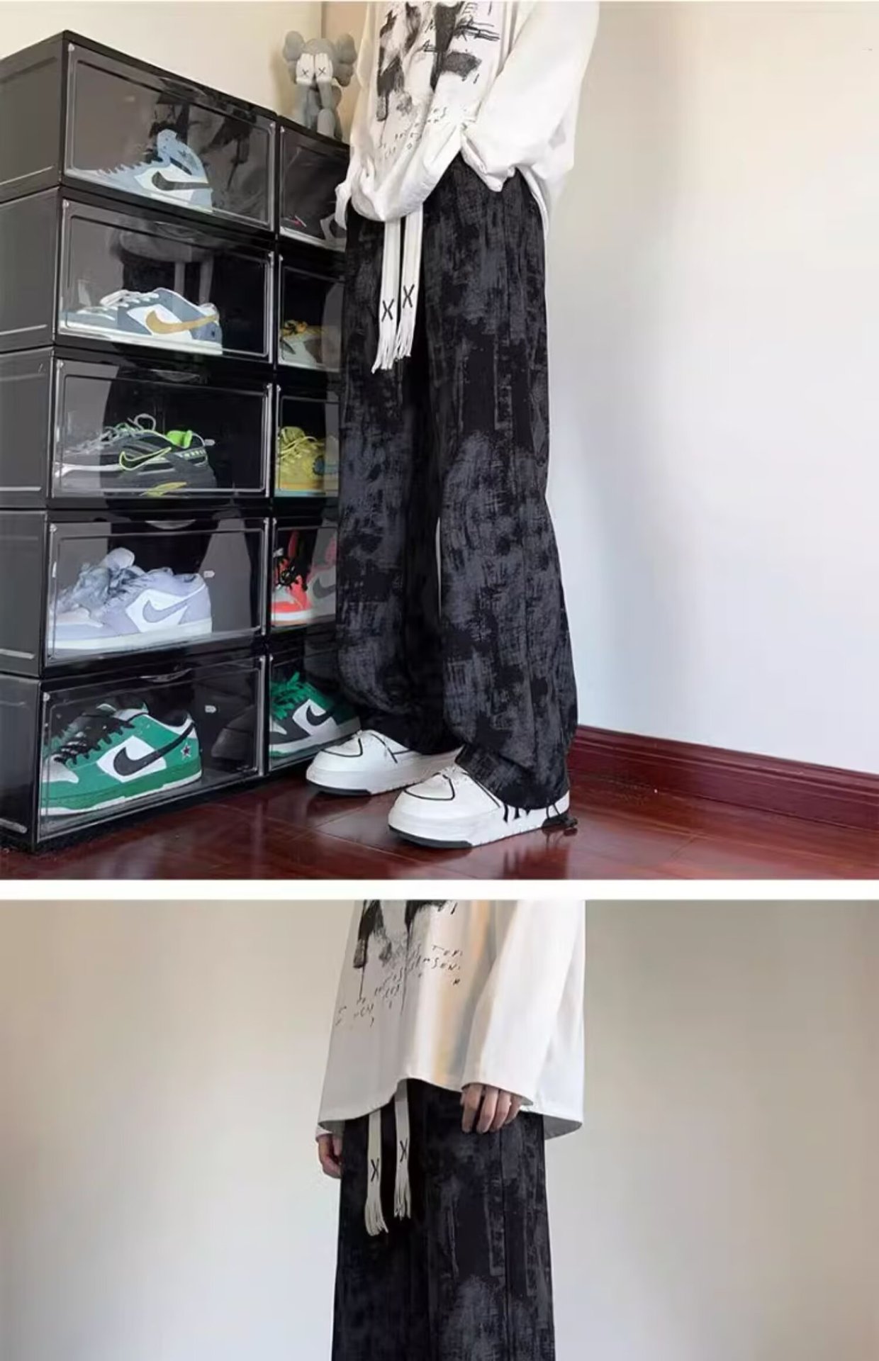 Американские брюки с галстуком повседневные мужские осенние и зимние бархатные толстые шнурки широкие брюки для ног свободные тонкие прямые спортивные брюки