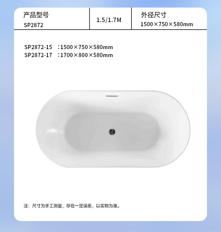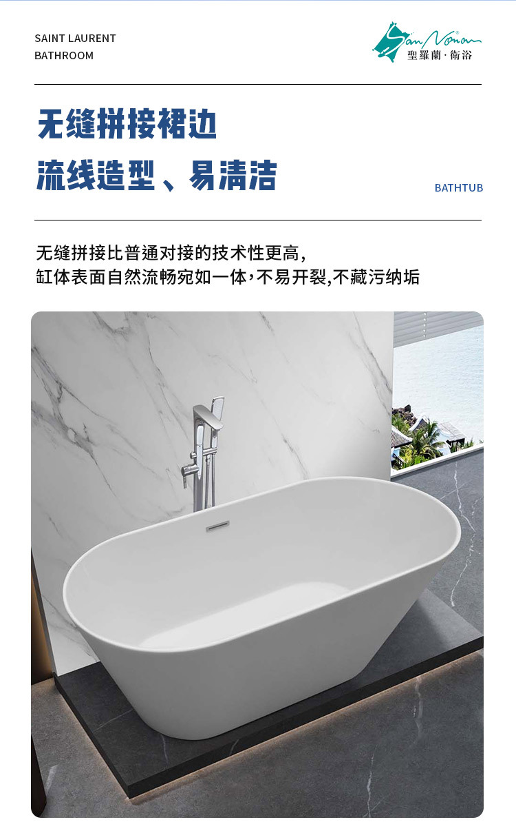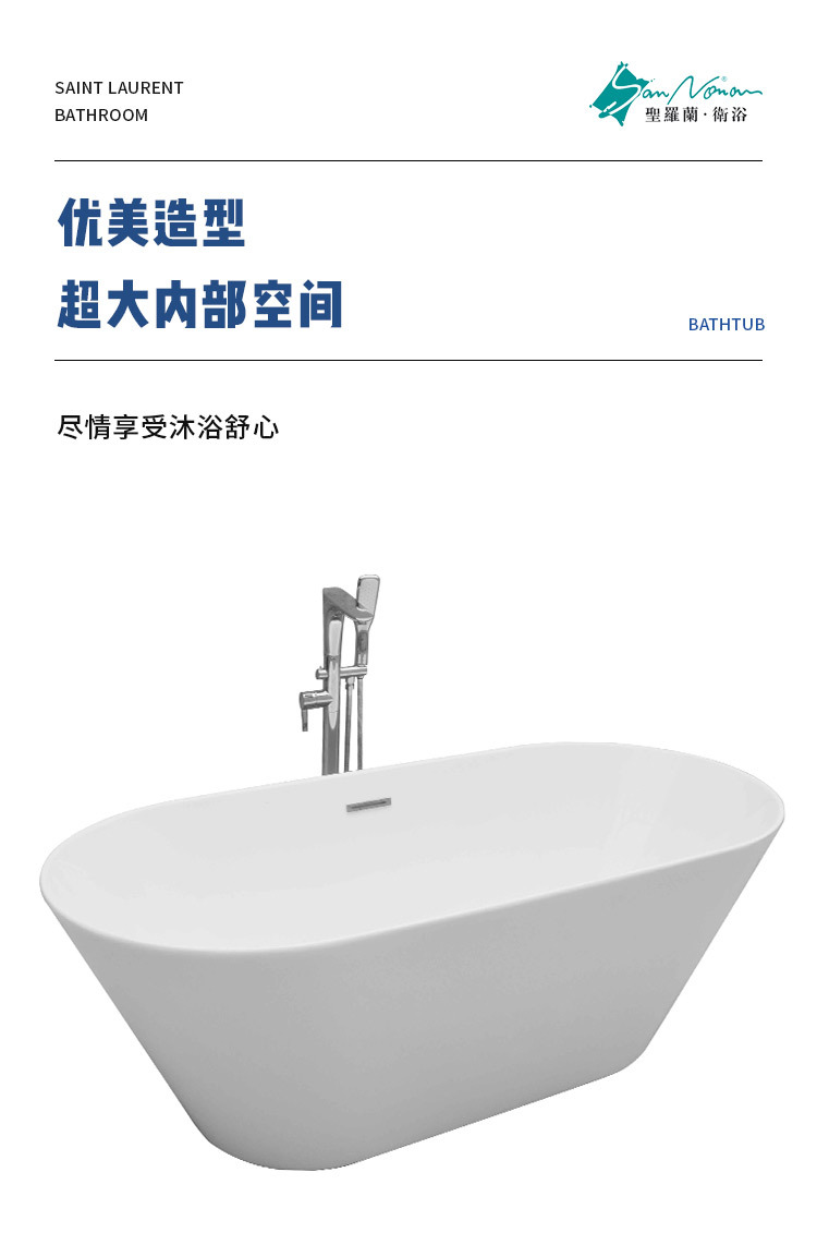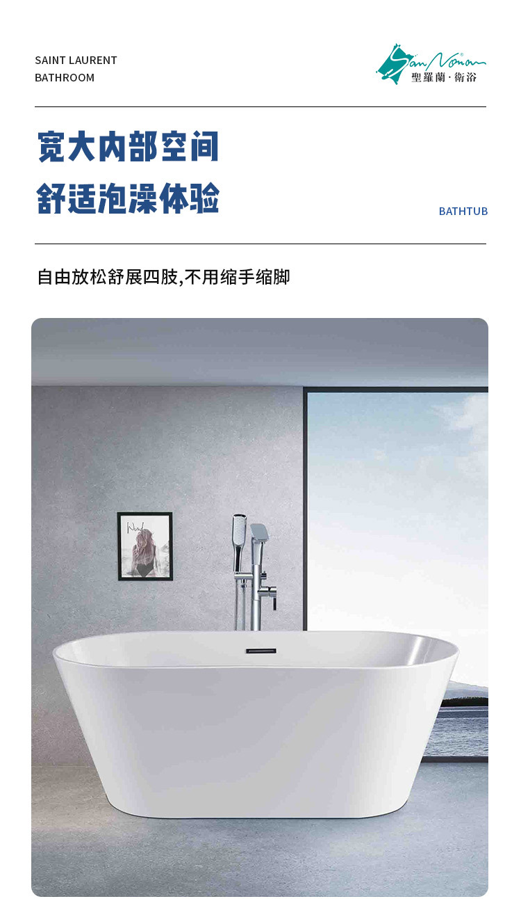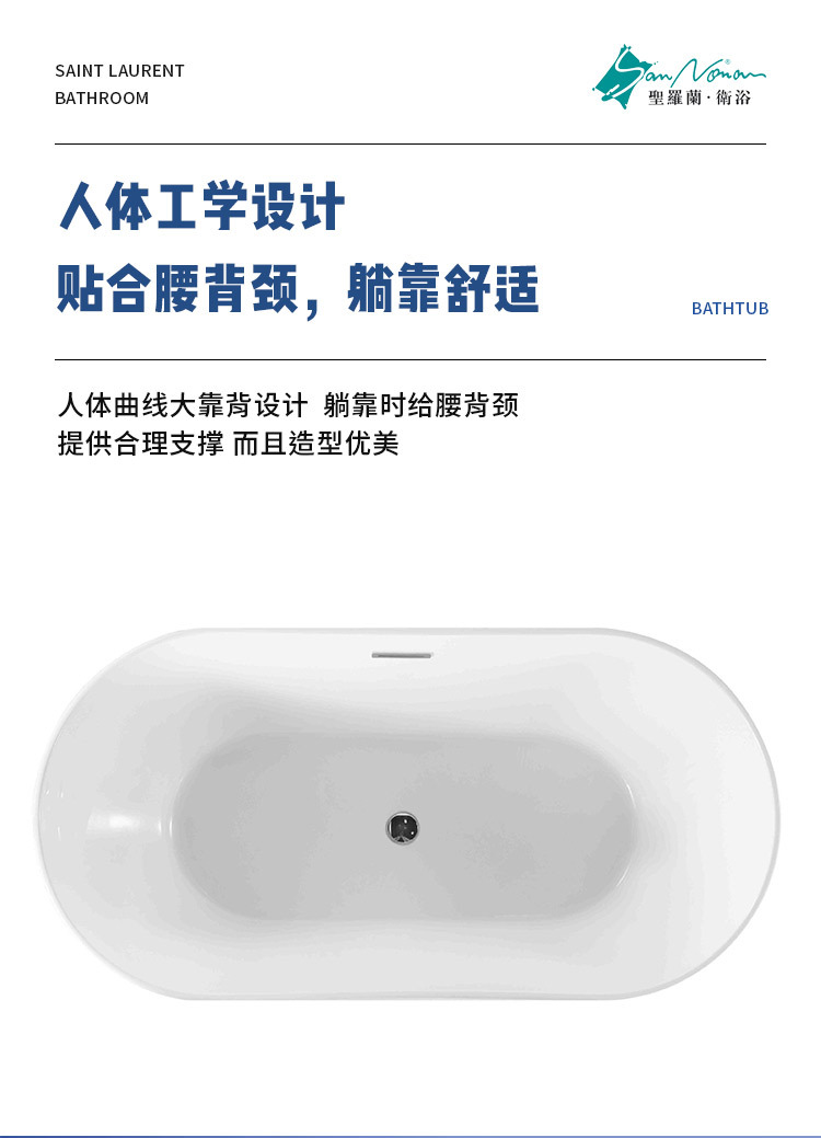 Sannora ванная комната для маленькой квартиры, акриловая овальная ванна с тонкими краями для взрослых, независимая ванна 1,5- 1.7m