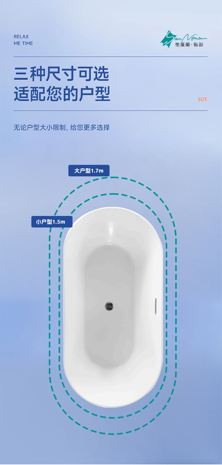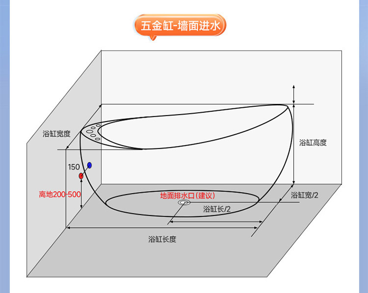 1700×800×580; 1500×750×580; Подходящий напольный смеситель (хромированный)