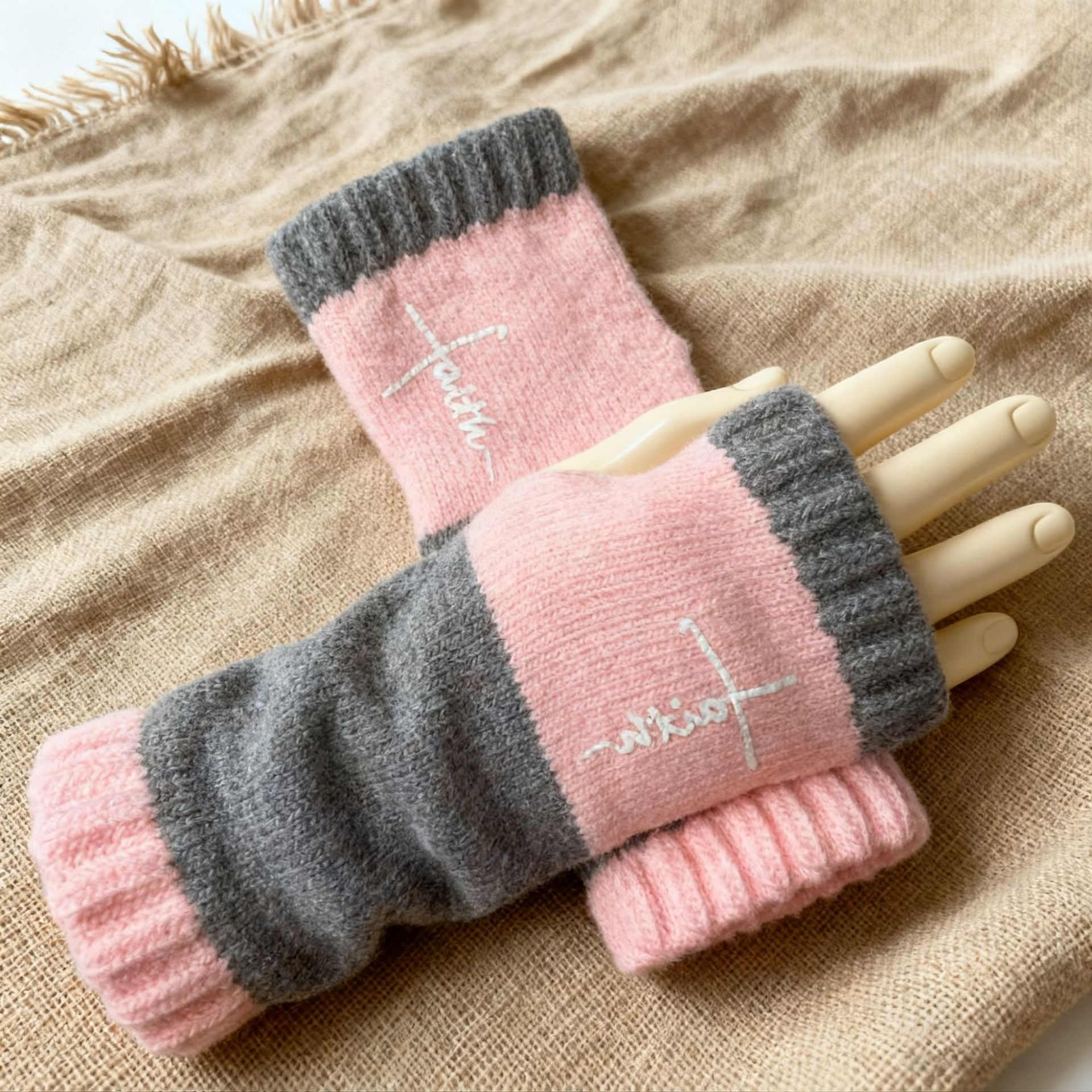 Тщепкие перчатки осень-зима теплая мода дамы вязаные перчатки трансграничная мода теплая сплайная вышивка перчатки женщины