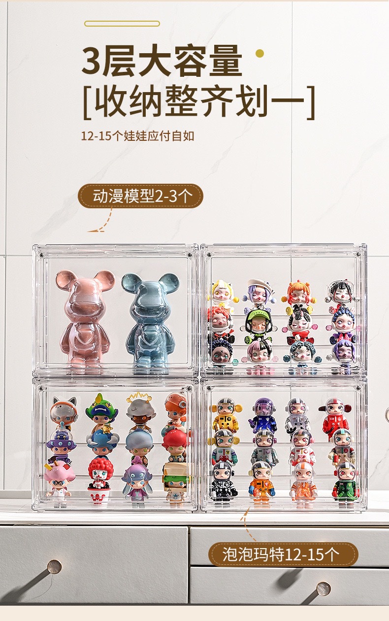 Коробка для хранения фигурок Labubu, прозрачный акриловый витринный шкаф для игрушек с отделениями, можно крепить на стену