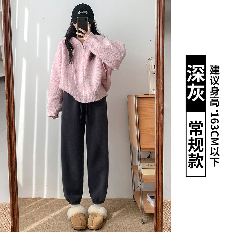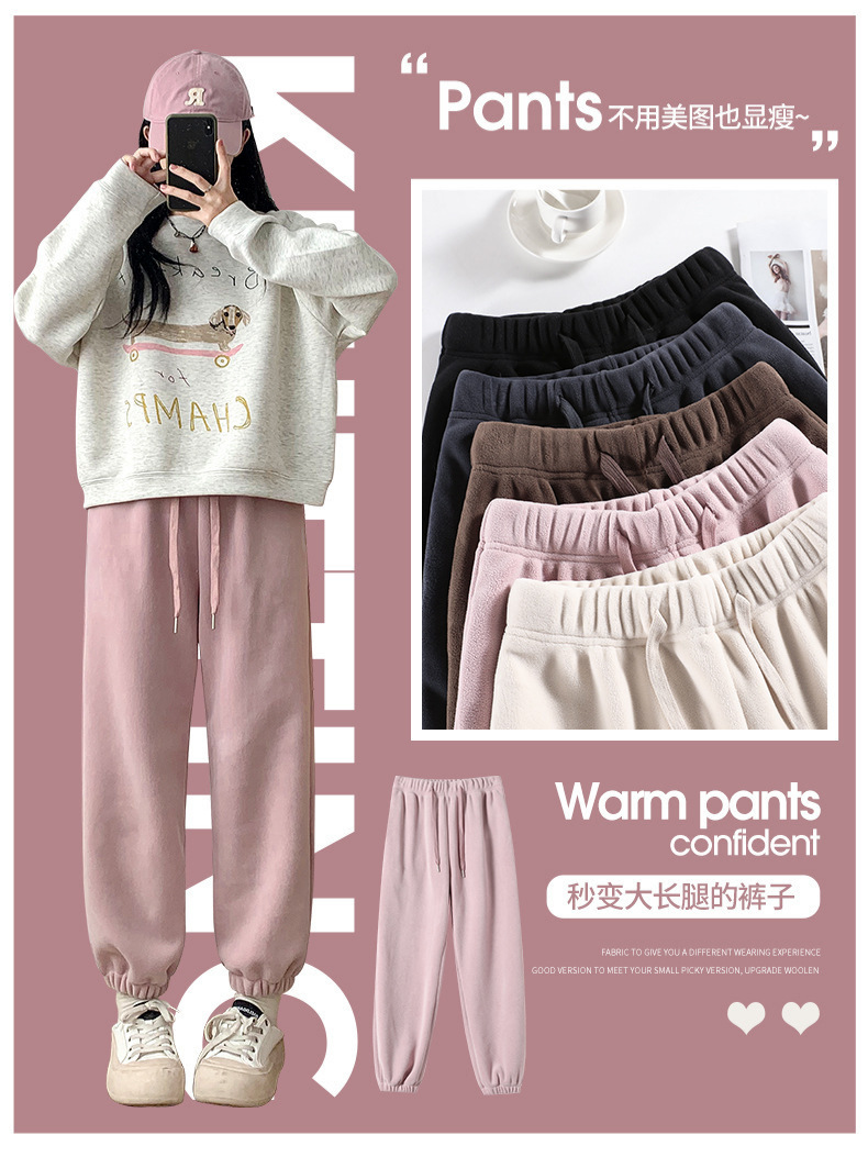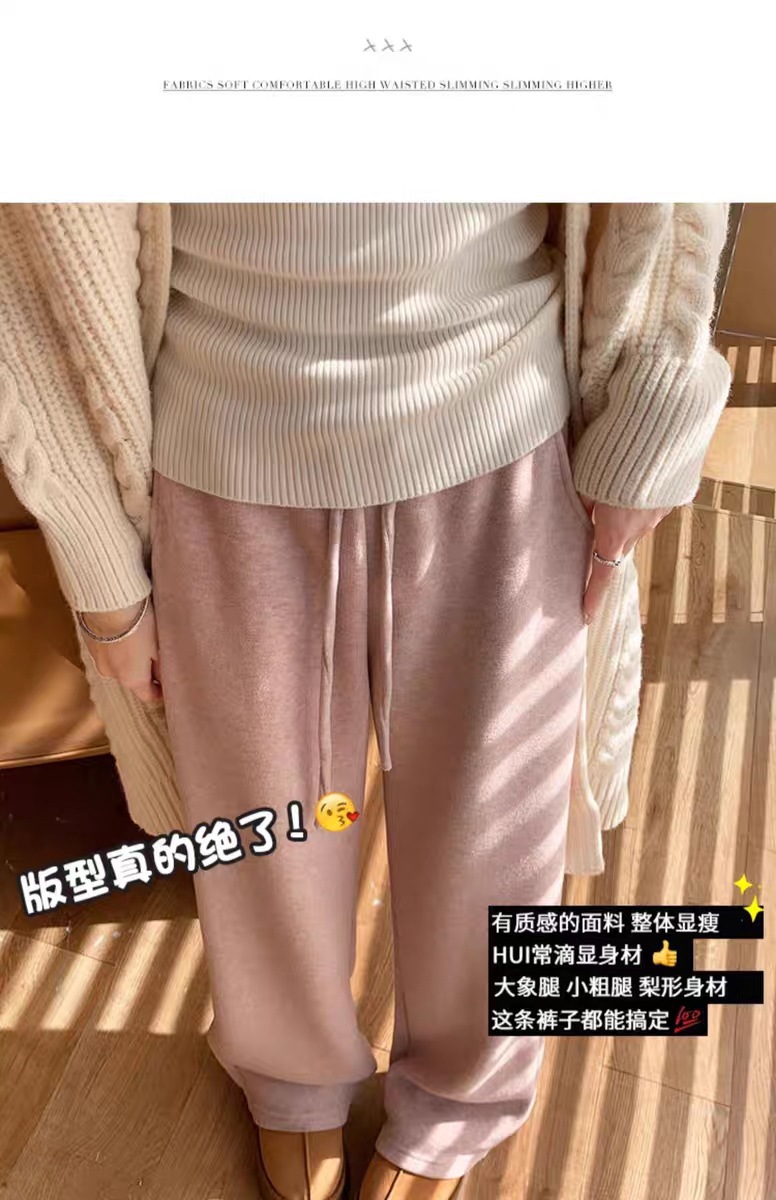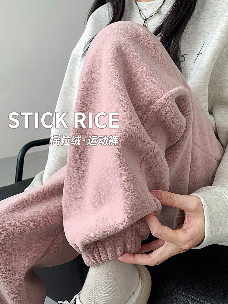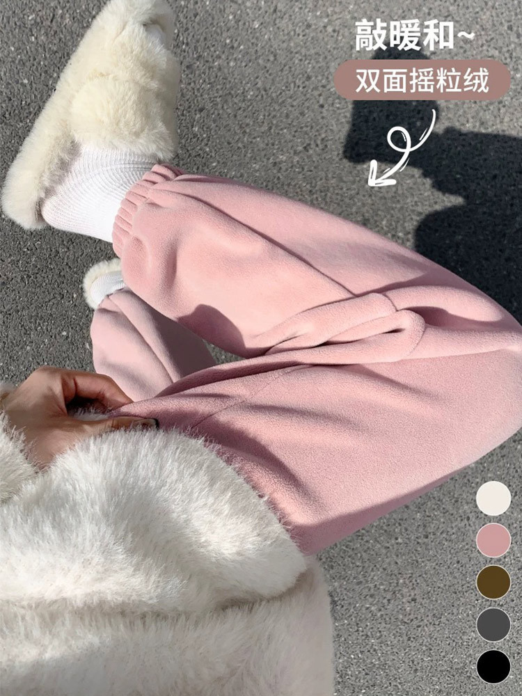 Розовые плюшевые спортивные брюки женские осенние и зимние толстые носить теплые хлопчатобумажные брюки