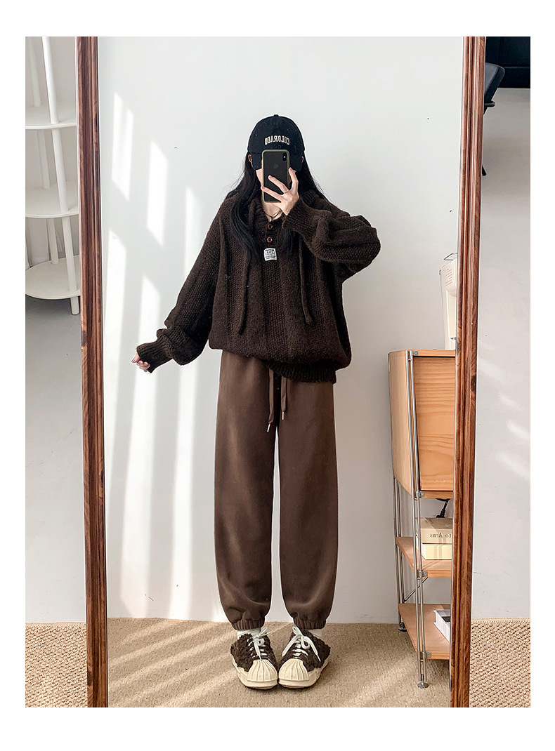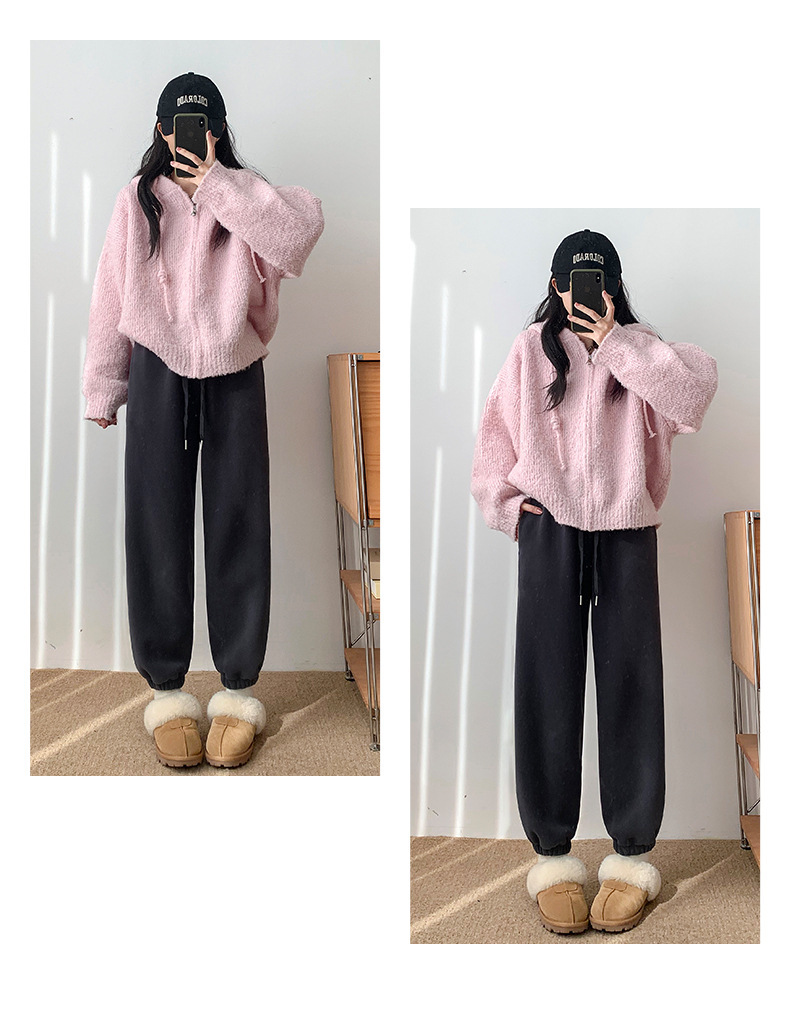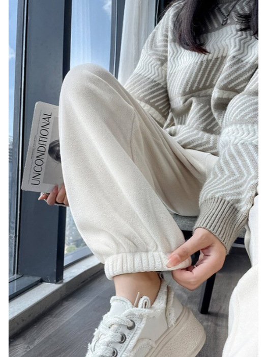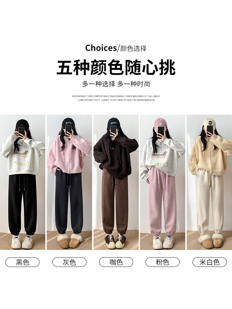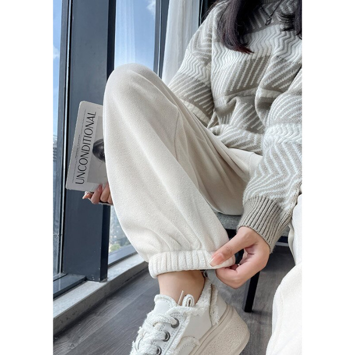 Розовые плюшевые спортивные брюки женские осенние и зимние толстые носить теплые хлопчатобумажные брюки