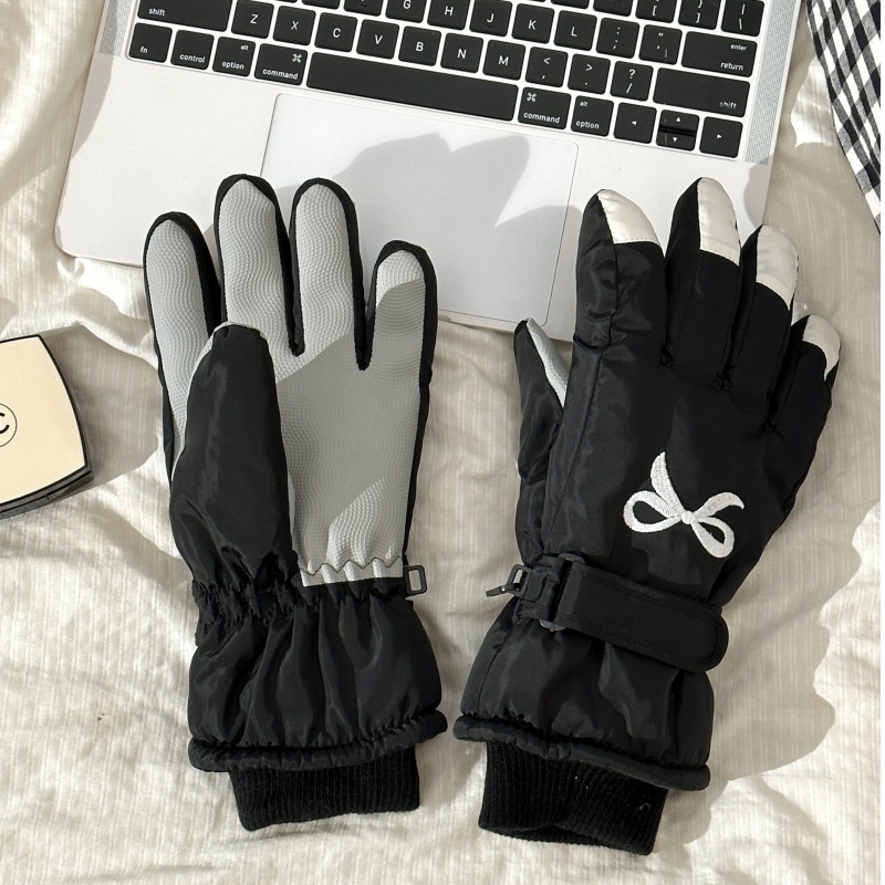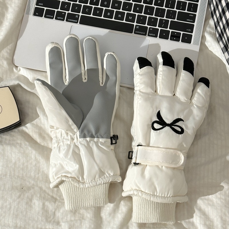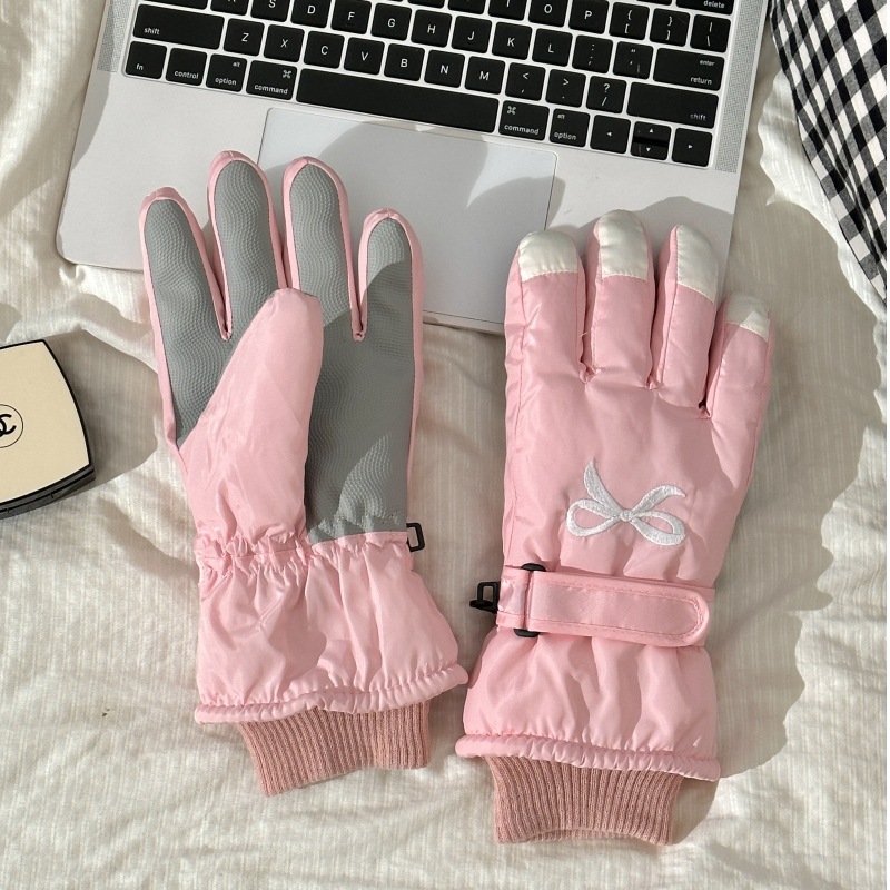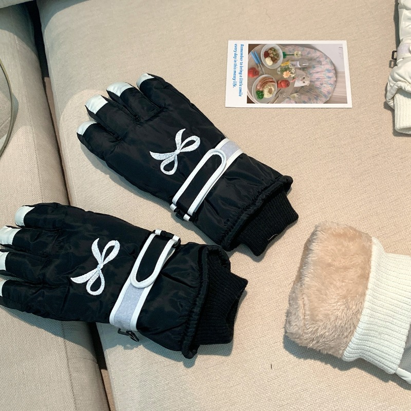 Симпатичные банты лыжные перчатки зимние утолщенные новые бархатные ветрозащитные водонепроницаемые на открытом воздухе хлопчатобумажные перчатки