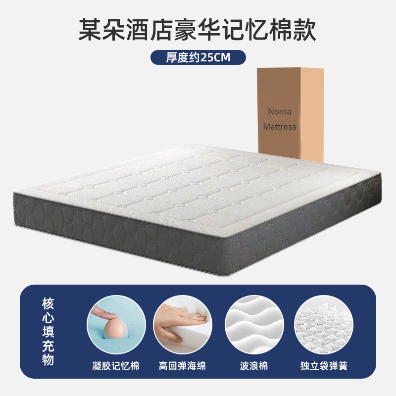 Тип А – реплика той же модели из определенного отеля (пена с эффектом памяти + волнистый хлопок + усиленная независимая карманная пружина); Модель B, экономичная базовая модель (пена с эффектом памяти + независимая карманная пружина)