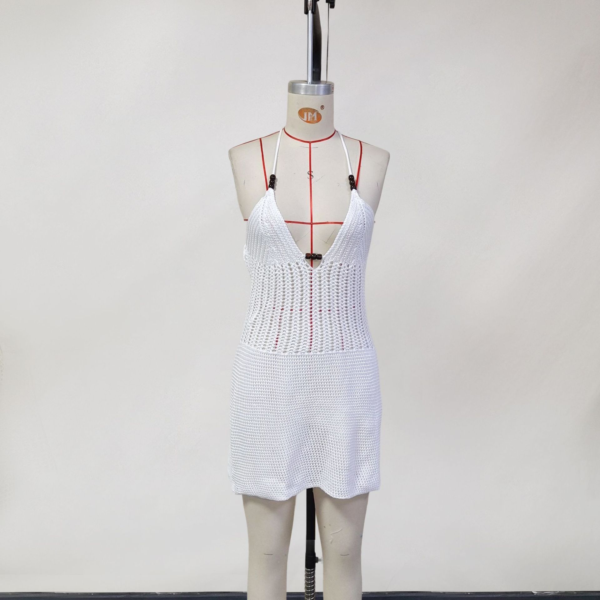 2025 Европа и США трансграничная новая женская сексуальная полая спинка с ягодицами шейный ремень вязаный пляжный юбка женский