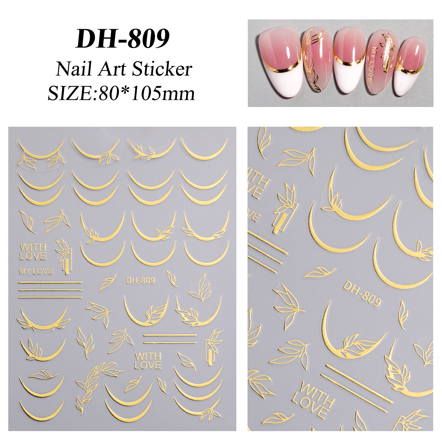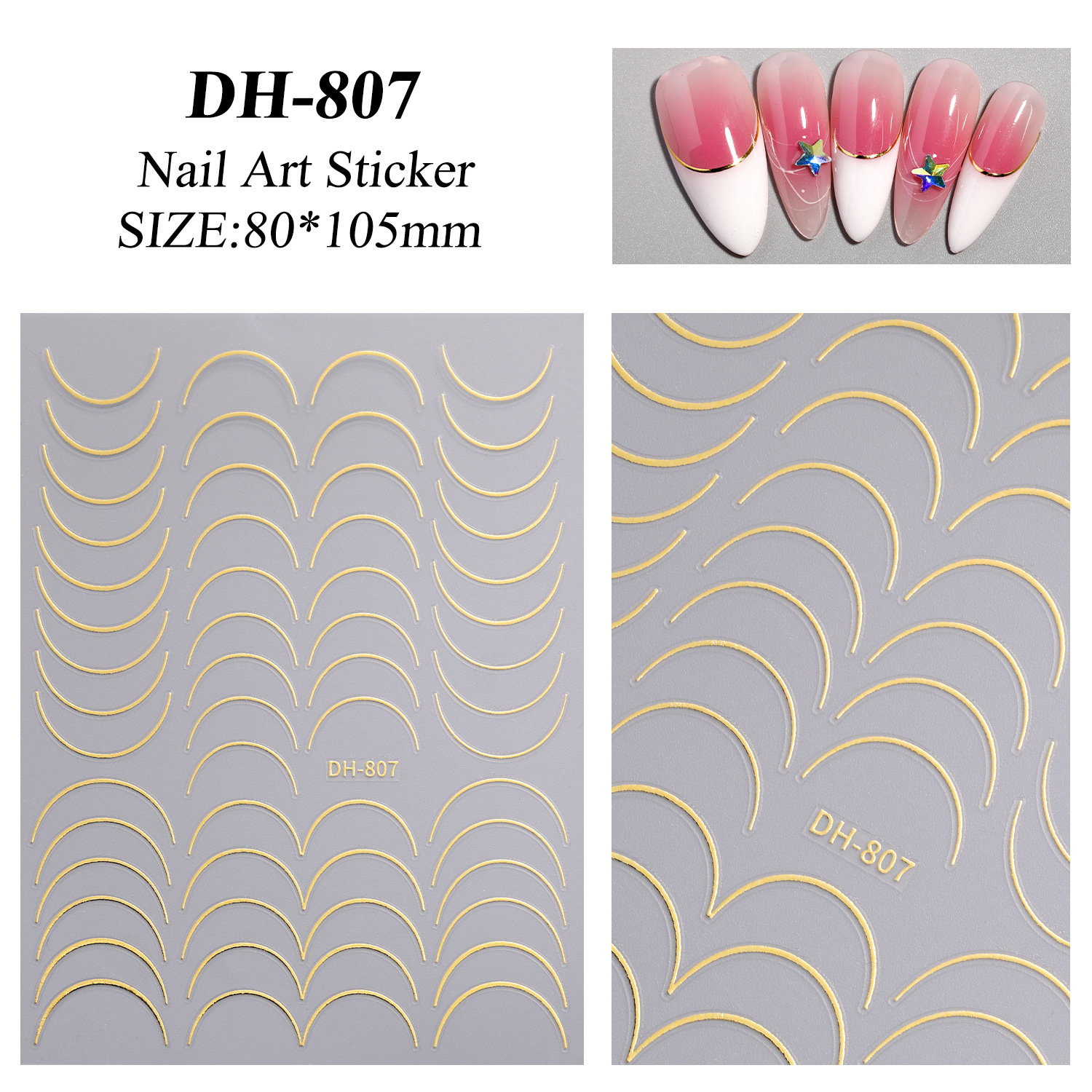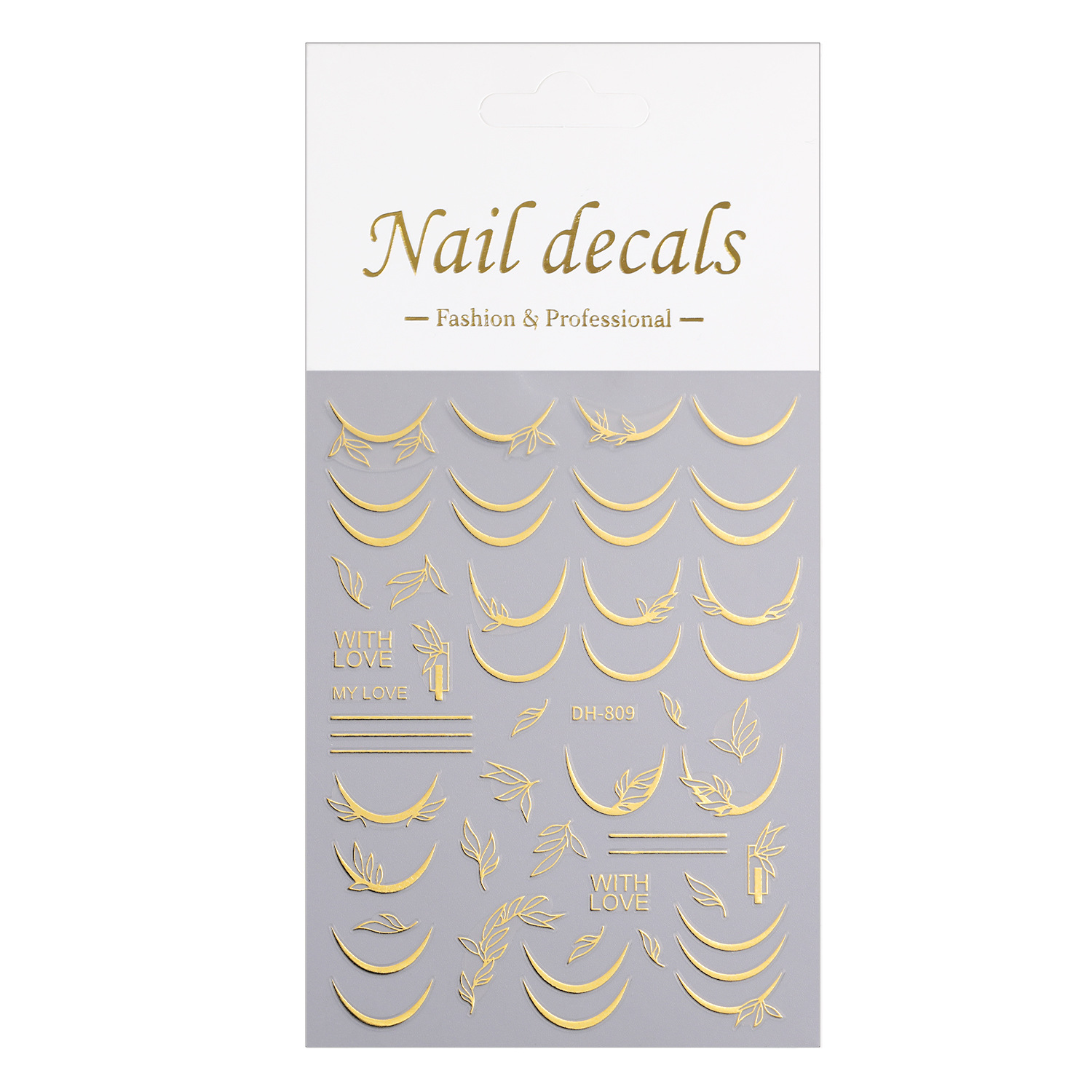 Наклейки для французского маникюра с золотой фольгой, плоские, простые, универсальные, для самостоятельного маникюра, аксессуары в стиле DH