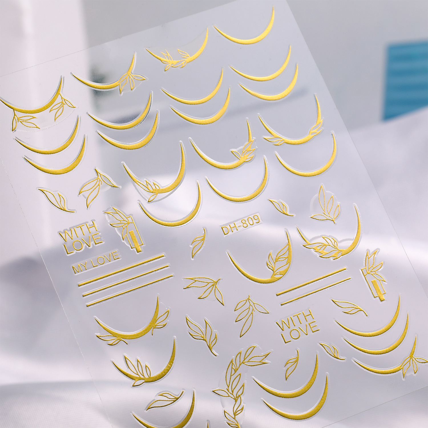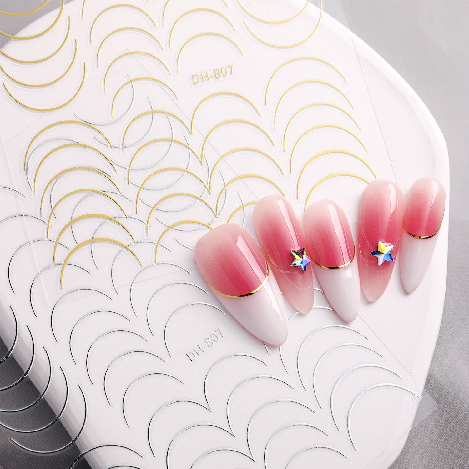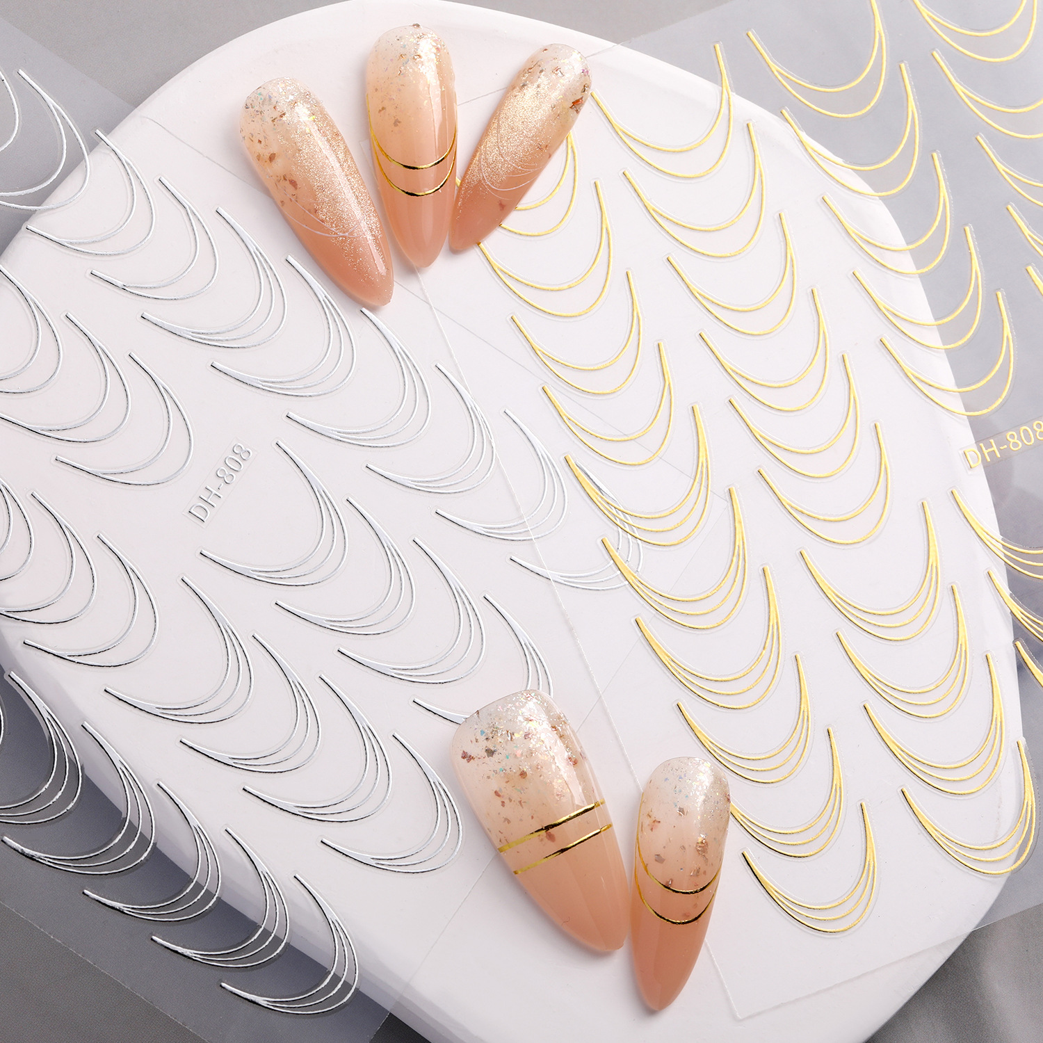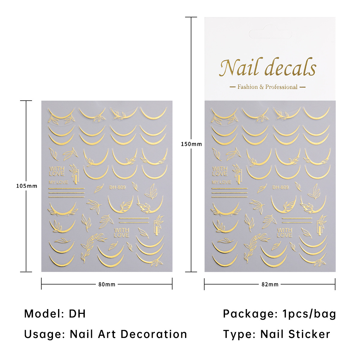 Наклейки для французского маникюра с золотой фольгой, плоские, простые, универсальные, для самостоятельного маникюра, аксессуары в стиле DH