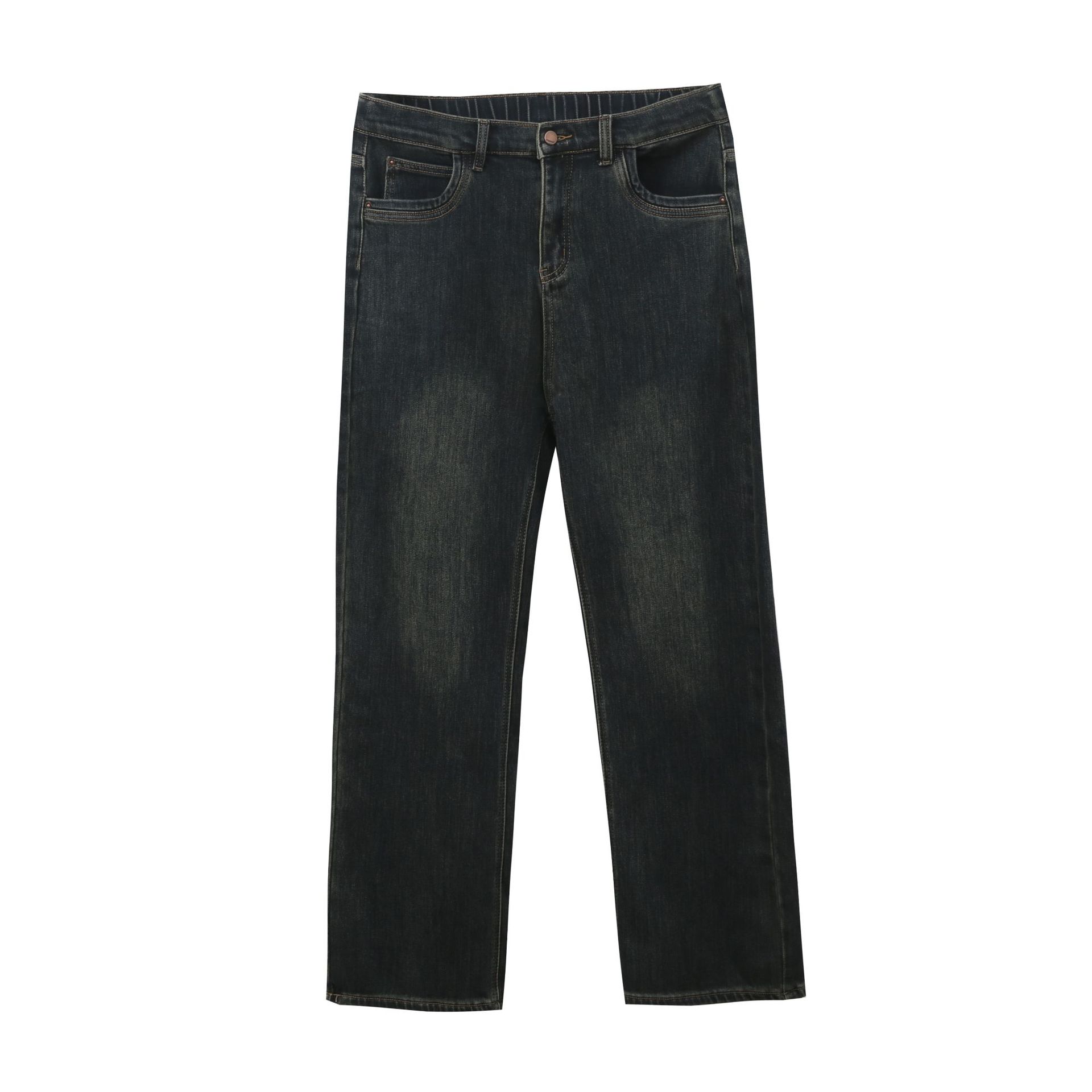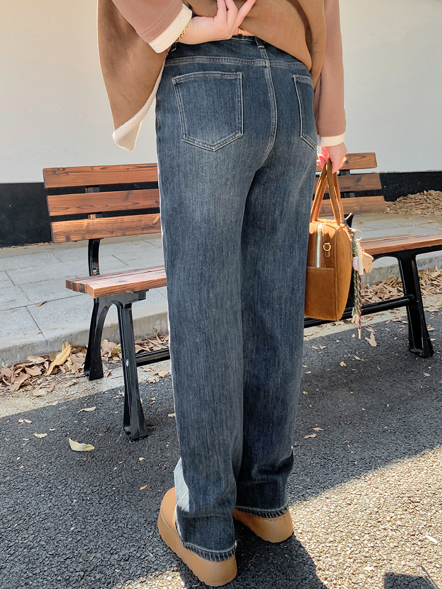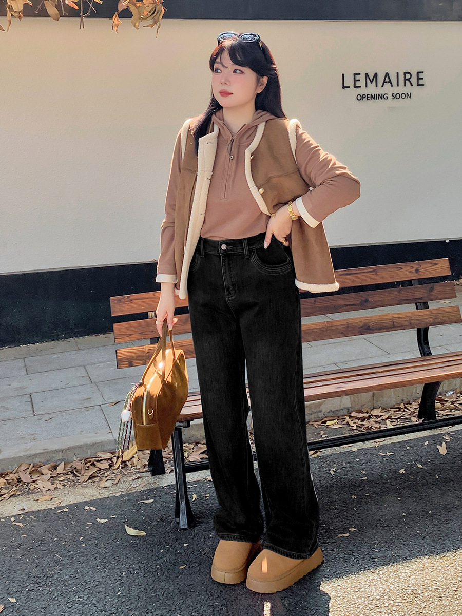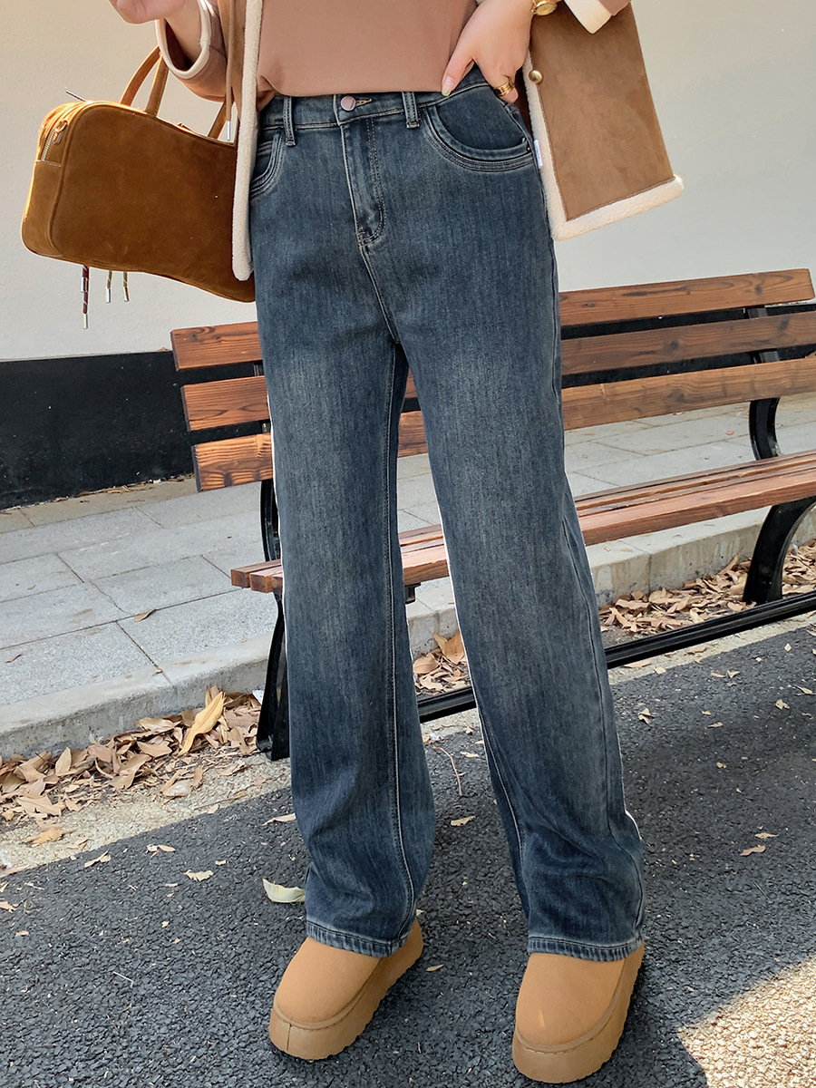 Ретро синие широкие ножки джинсы женская осень-зима плюс бархат большой размер толстый мм свободный тонкая высокая талия прямые брюки 421921