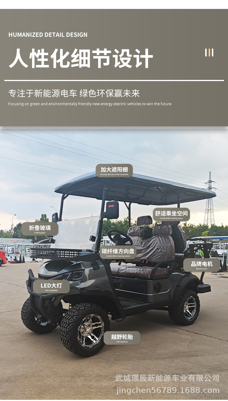 Экспортный источник внедорожный гольф-кар Электрический четырехколесный туристический автомобиль Живописное поле для гольфа Электрический гольф