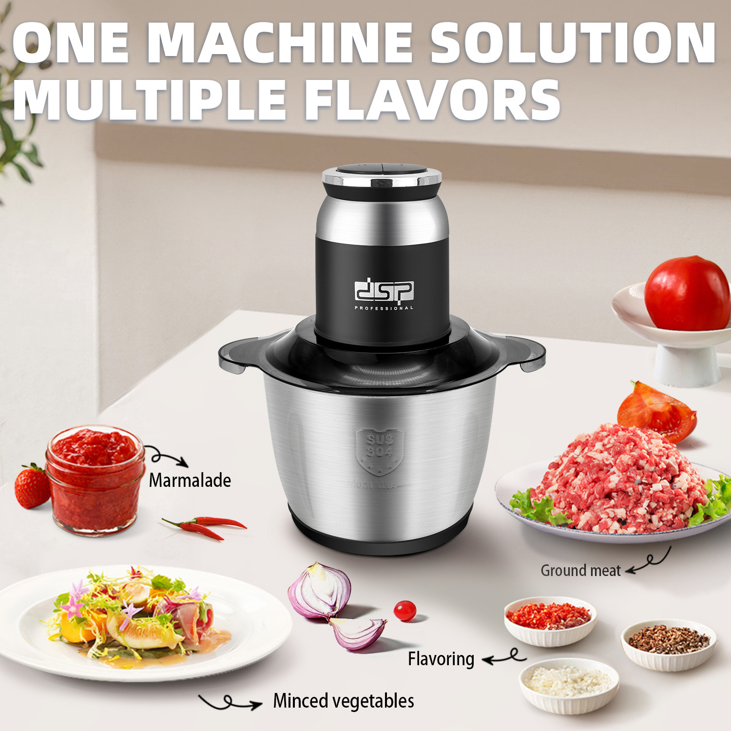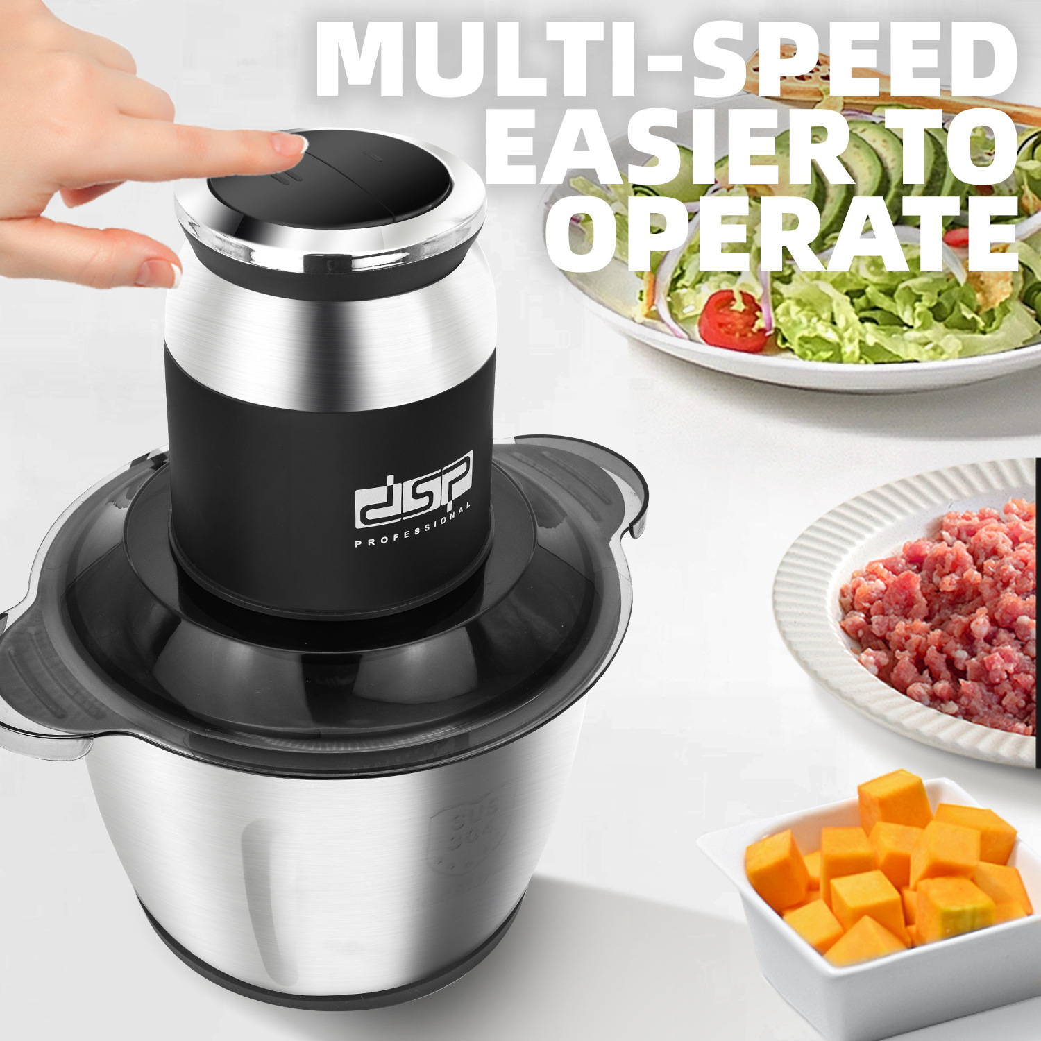 DSP/Dansong мясорубка большая емкость цельной стали 3L Электрический многофункциональная домашняя кухня