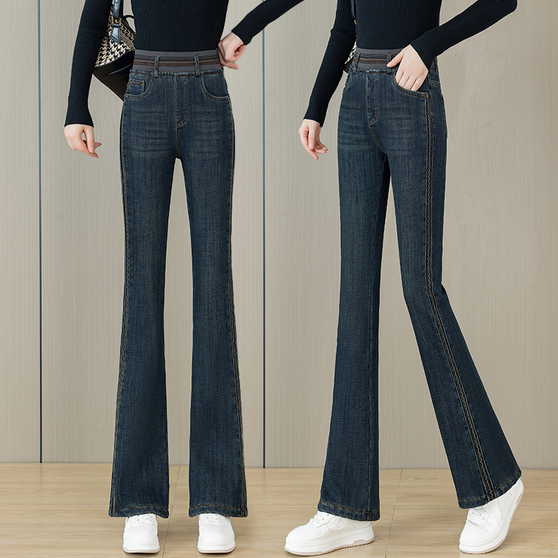 Модные джинсовые расклешенные брюки для женщин, новинка весны, осени и зимы 2025 года, с эластичным поясом, утягивающие, повседневные, прямые, расклешенные брюки-клеш.