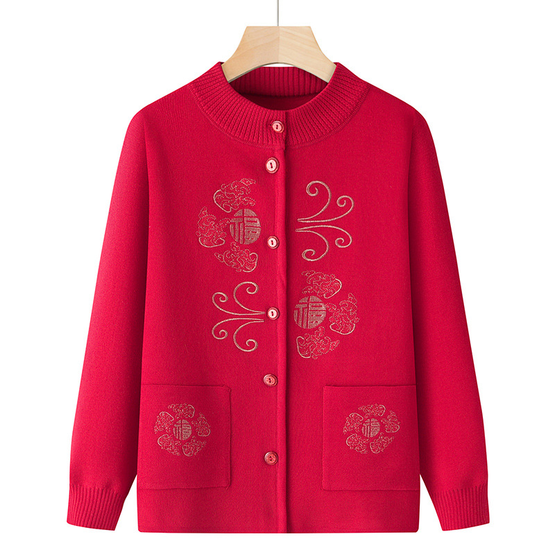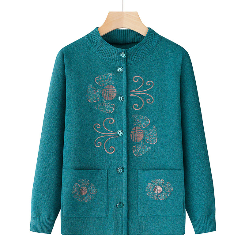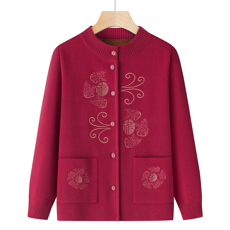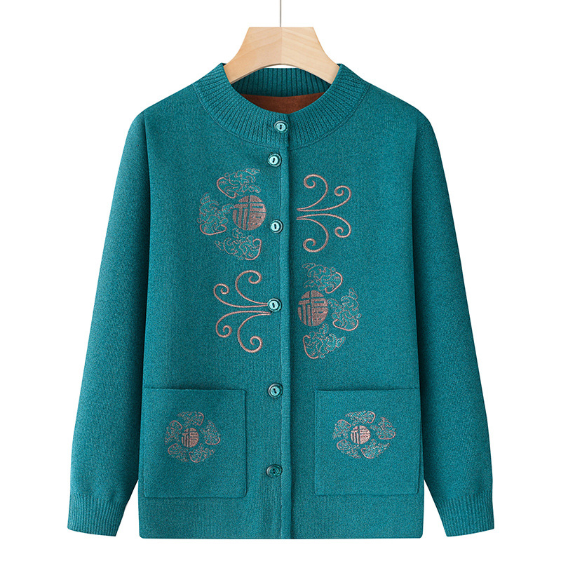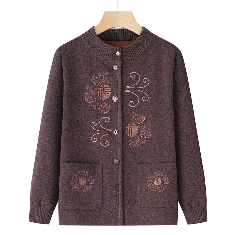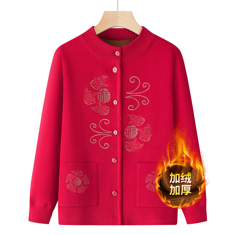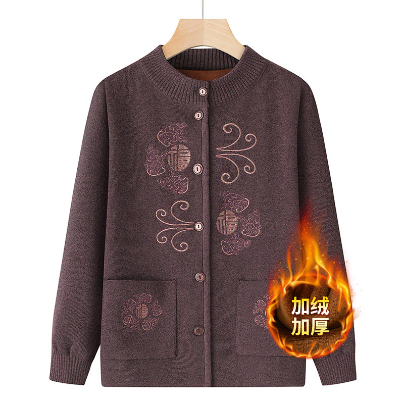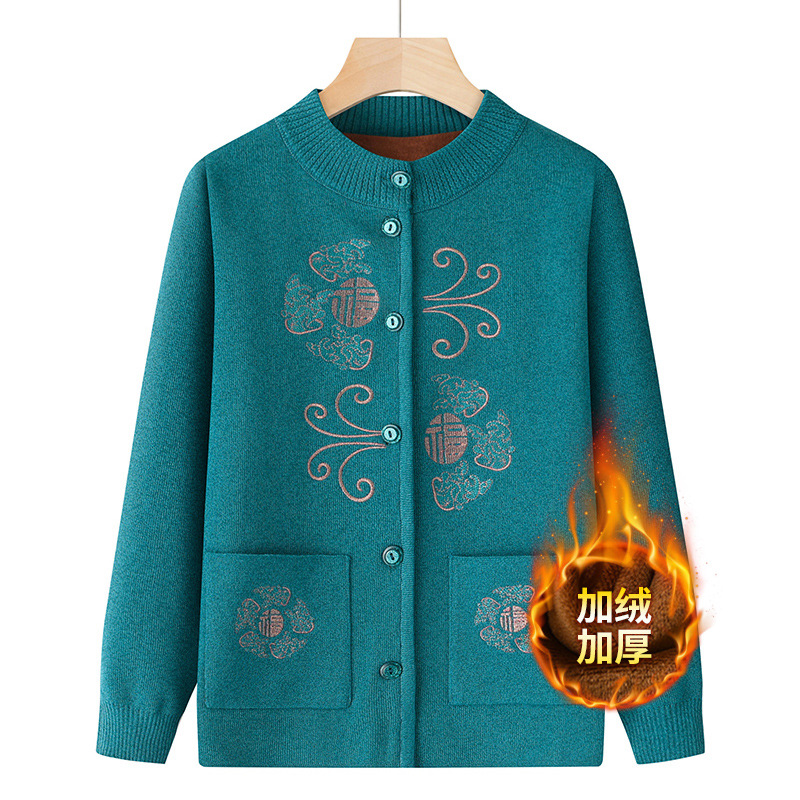 Пожилые бабуля свитер осень-зима куртка мама одевается бархат толстый кардиган вышивка старуха одежда для женщин