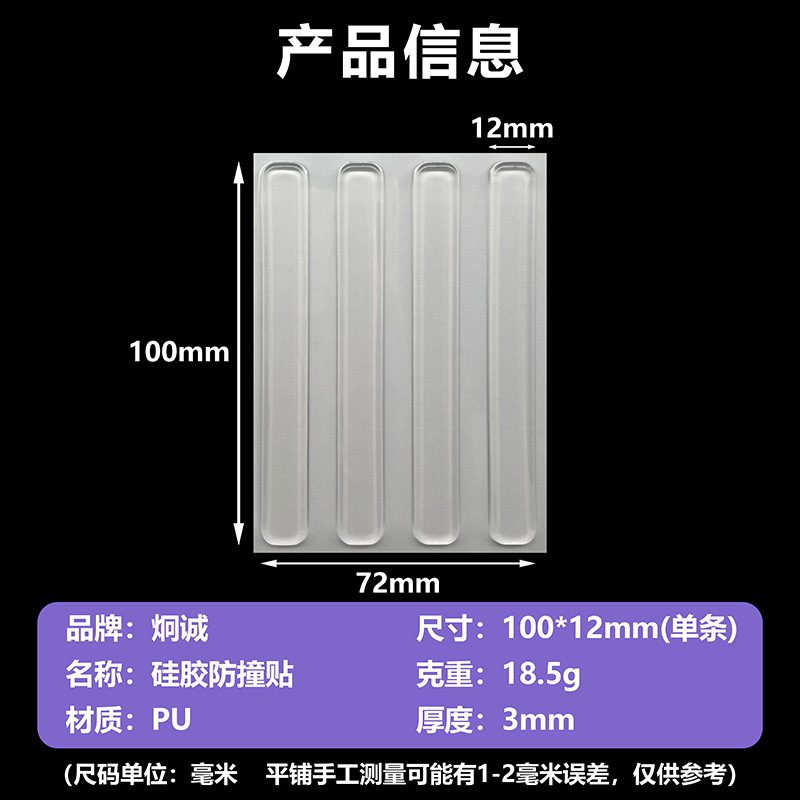 自粘硅胶防撞贴无痕冰箱门硅胶防撞条桌子门把手免打孔透明防撞条