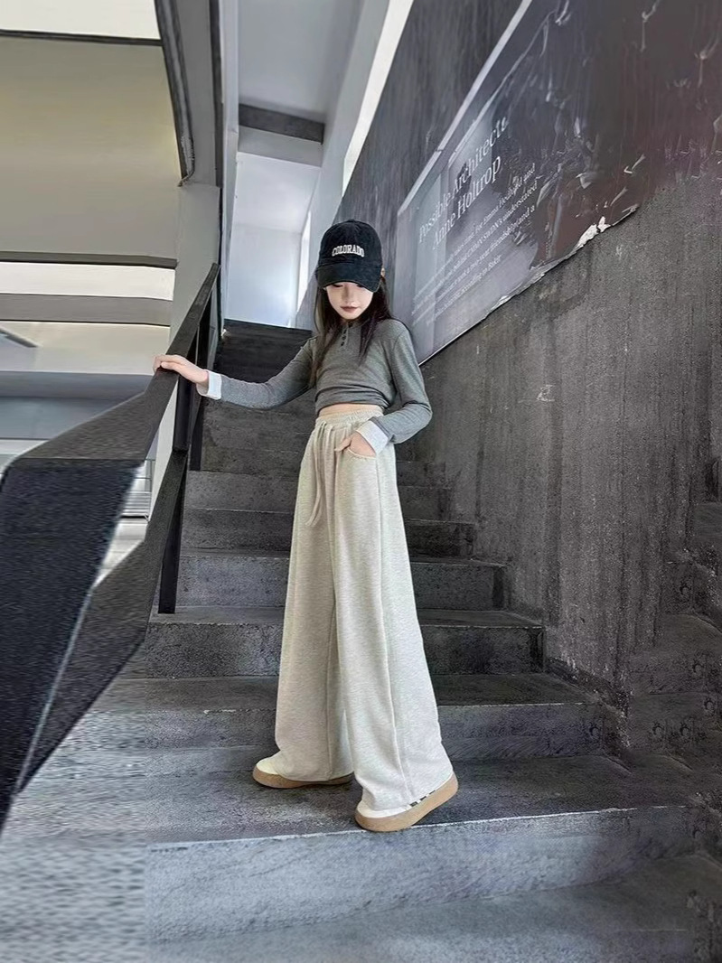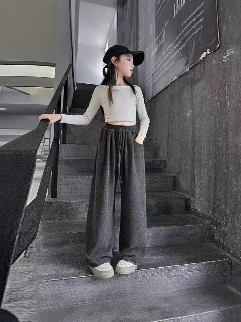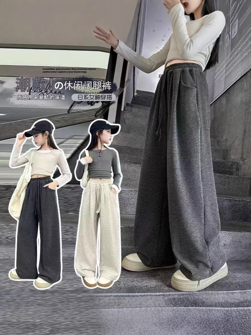 Брюки для девочек осень-зима 2024 новые корейские детские широкие прямые брюки