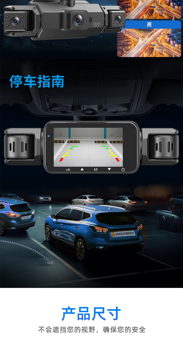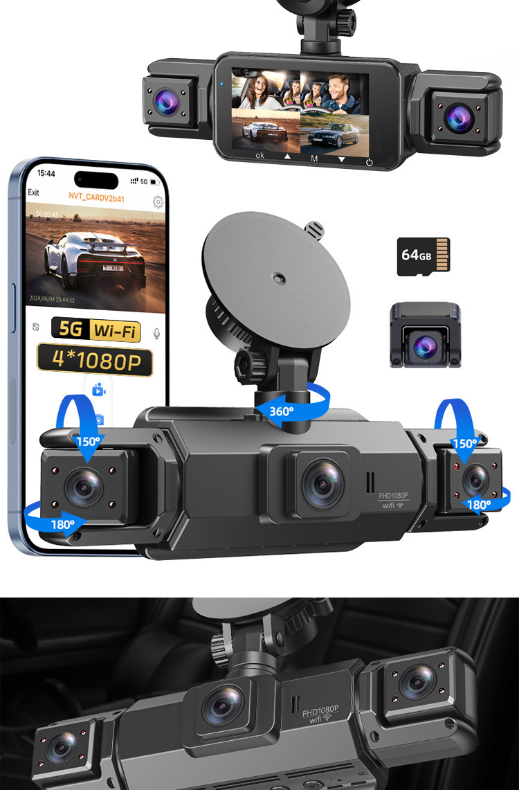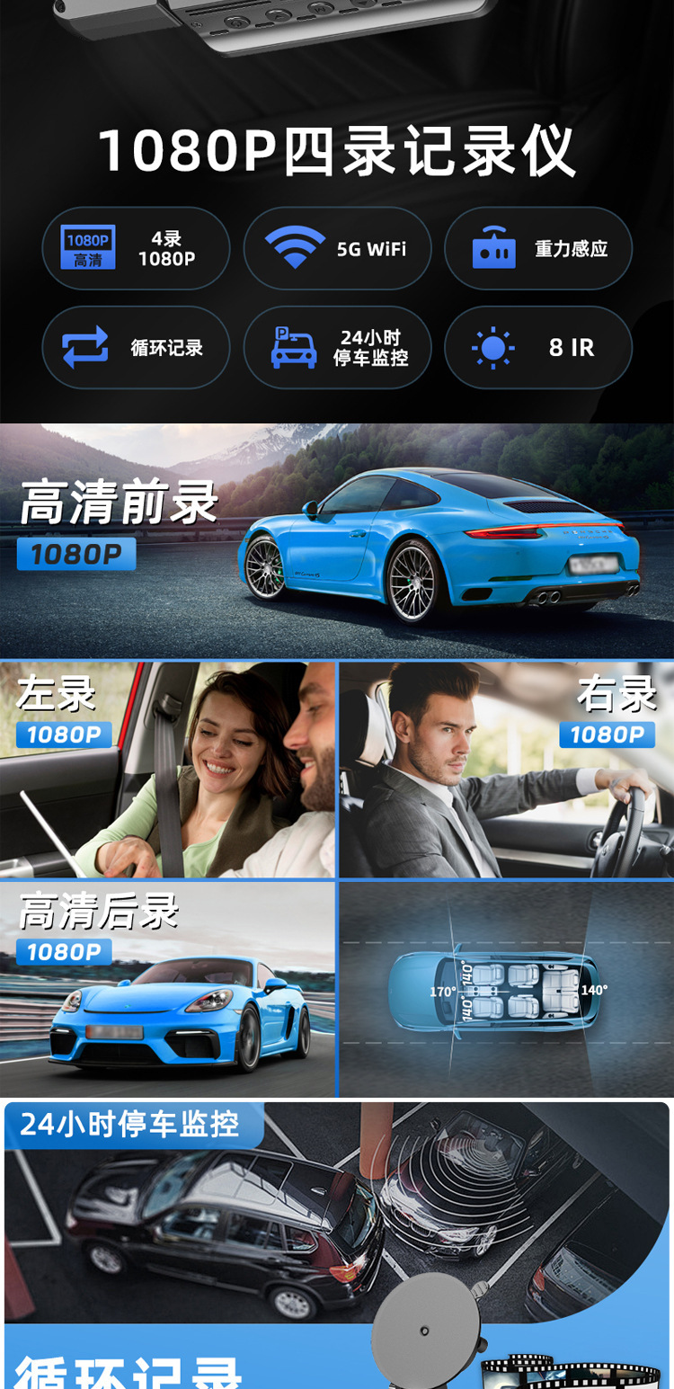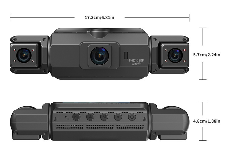 产品简要:四镜头带WIFI记录仪,有高配版和低配版,详情可以咨询客户 装箱参数: 单套彩盒尺寸:18.8*18*6.4cm