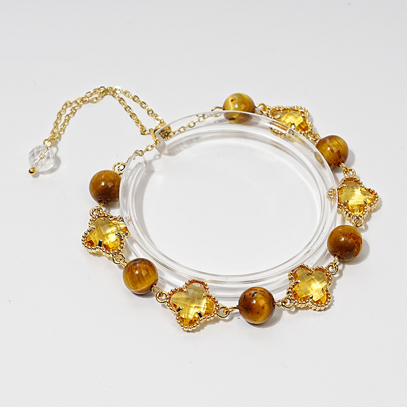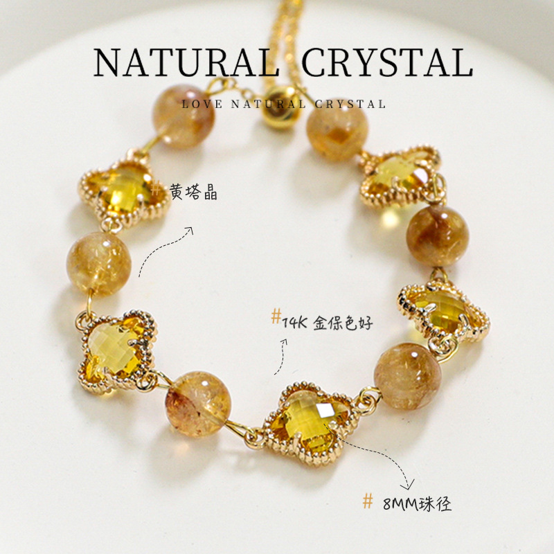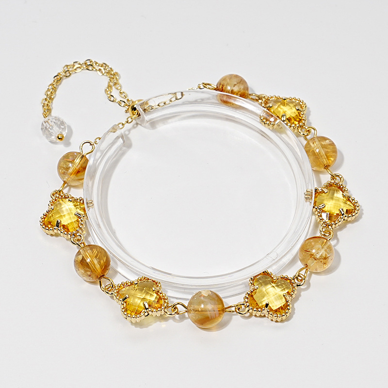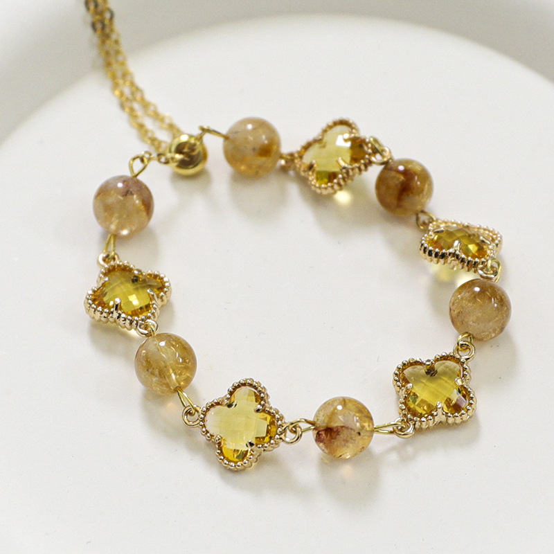 Натуральный цитрин желтая башня хрустальный браслет женский четырехлистный клевер осень и зима ниша дизайн легкий роскошный подарок для оптовых продаж
