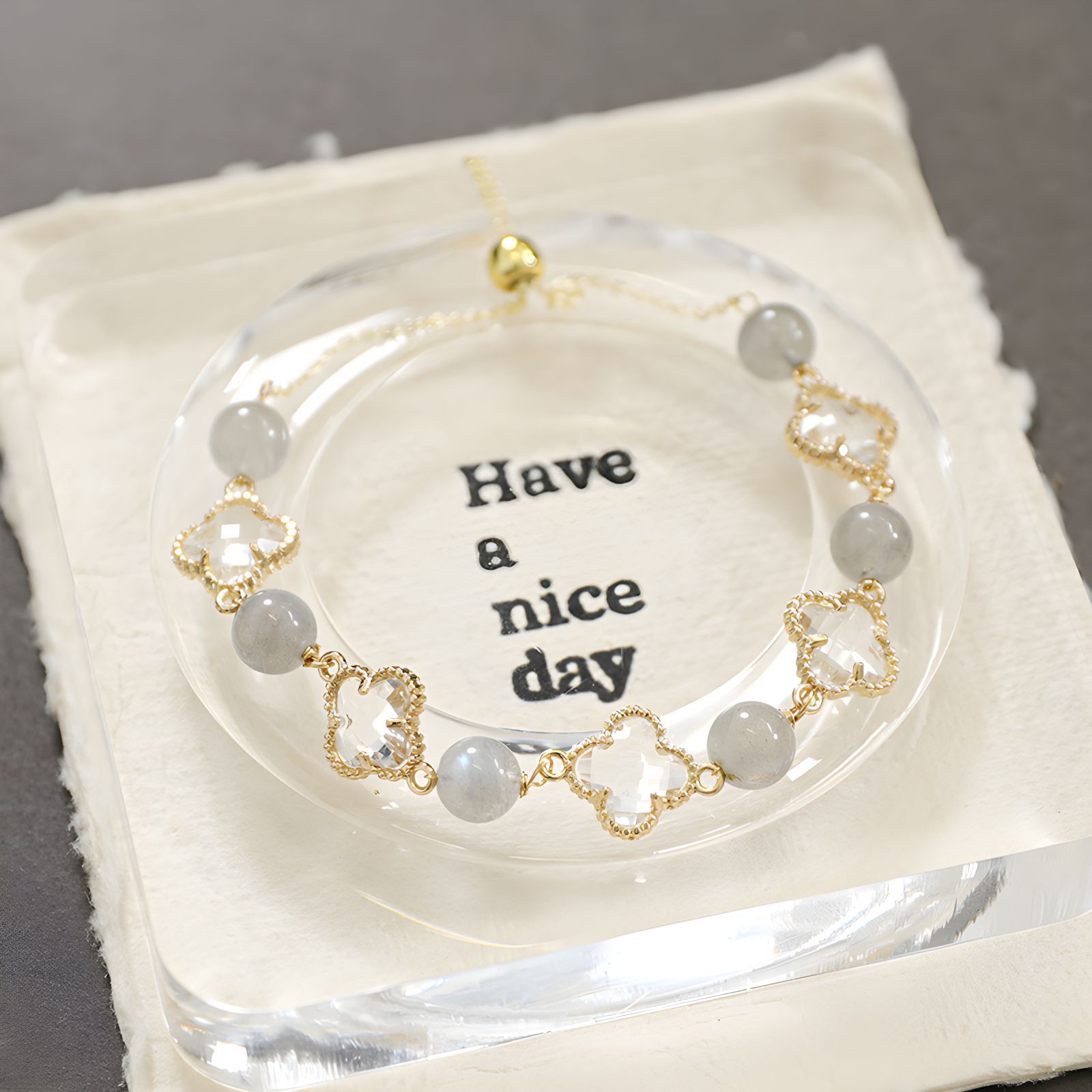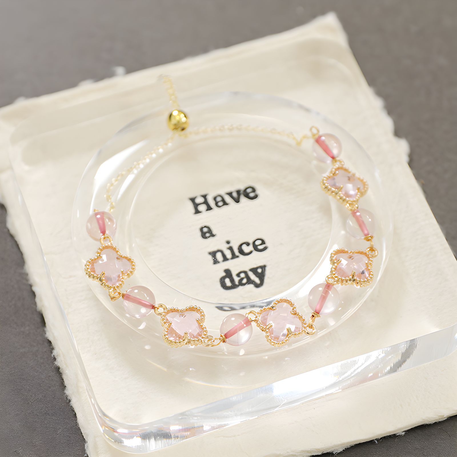 желтый четырехлистный клевер; Розовый четырехлистный клевер; белый четырехлистный клевер; фиолетовый четырехлистный клевер; Кристалл клубники в форме четырехлистного клевера; Золотой тигровый глаз с клевером; Тройчатка Гермес; Пренит Кловер