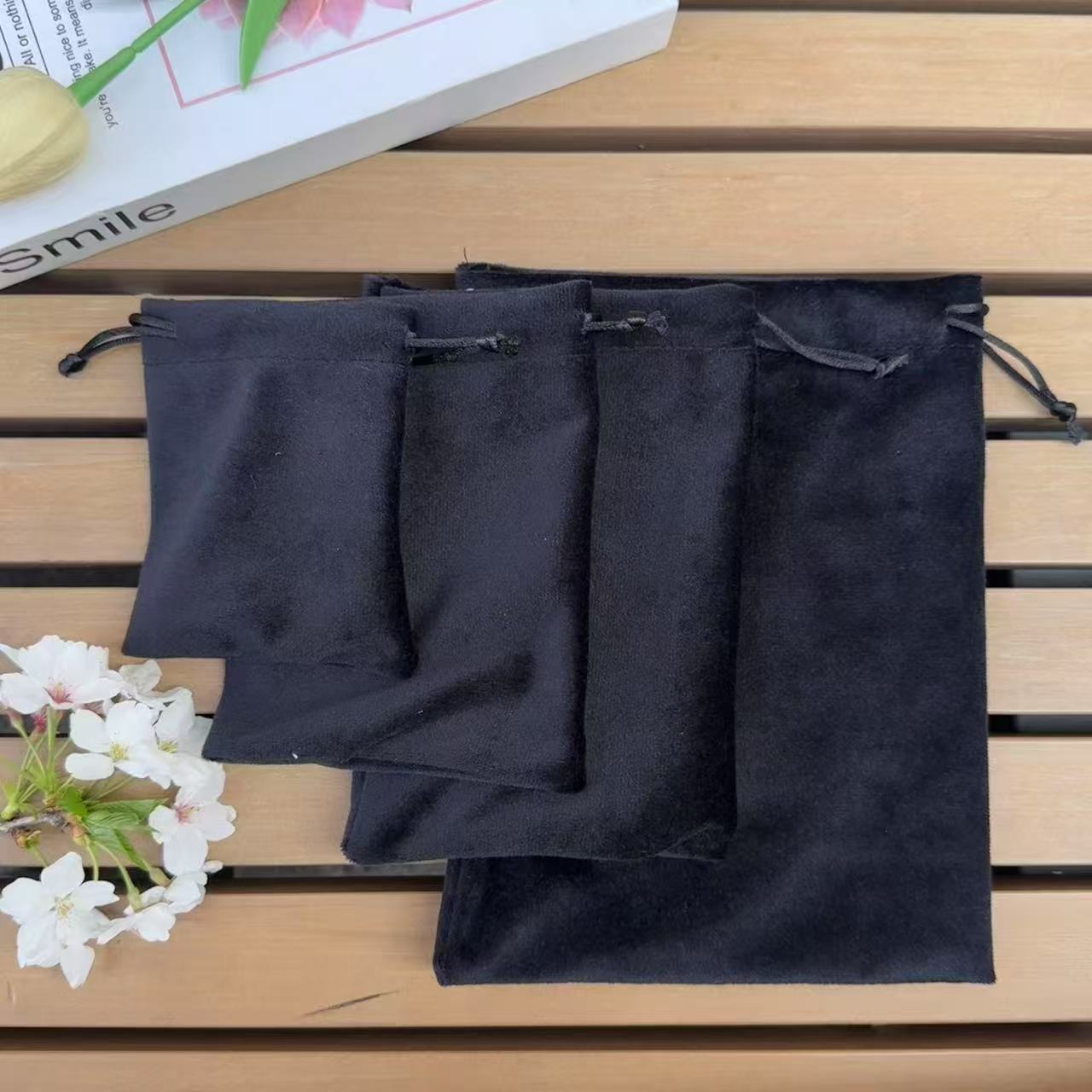 Оптовая продажа черный бархатный мешок для мобильного телефона держатель для хранения мешок для золотых и серебряных ювелирных украшений карманы шнурок тканевый мешок