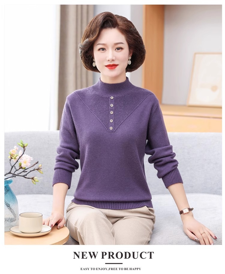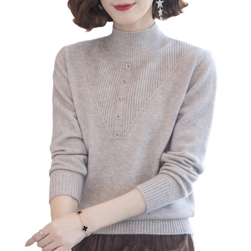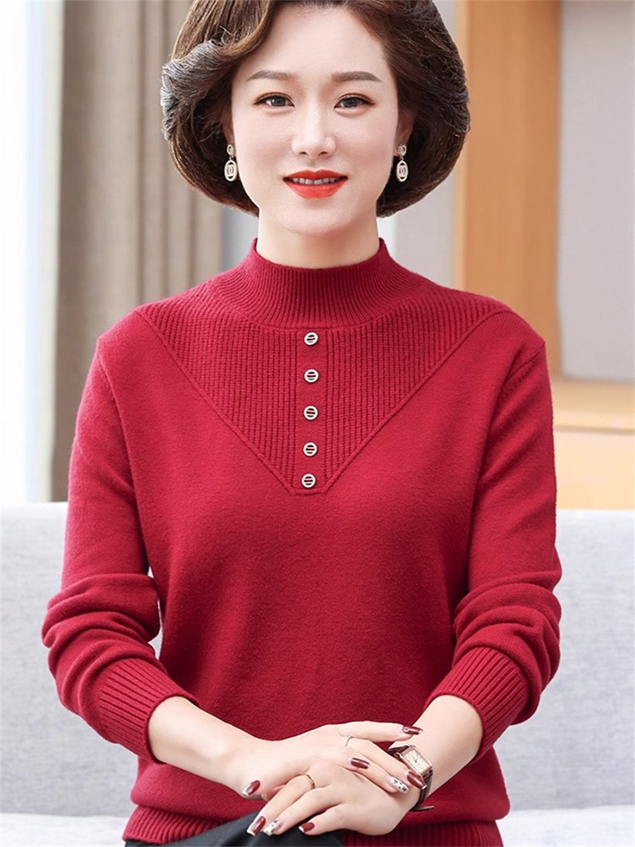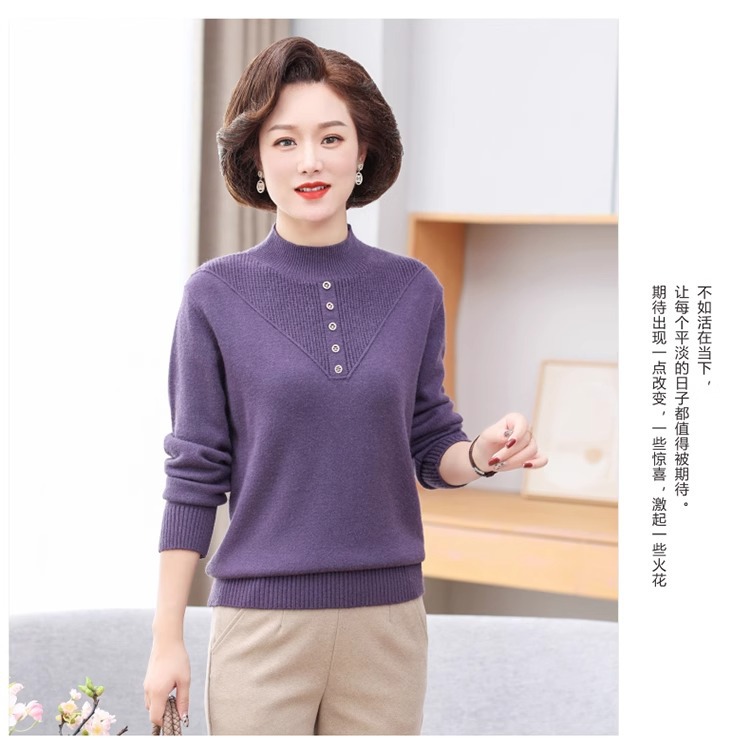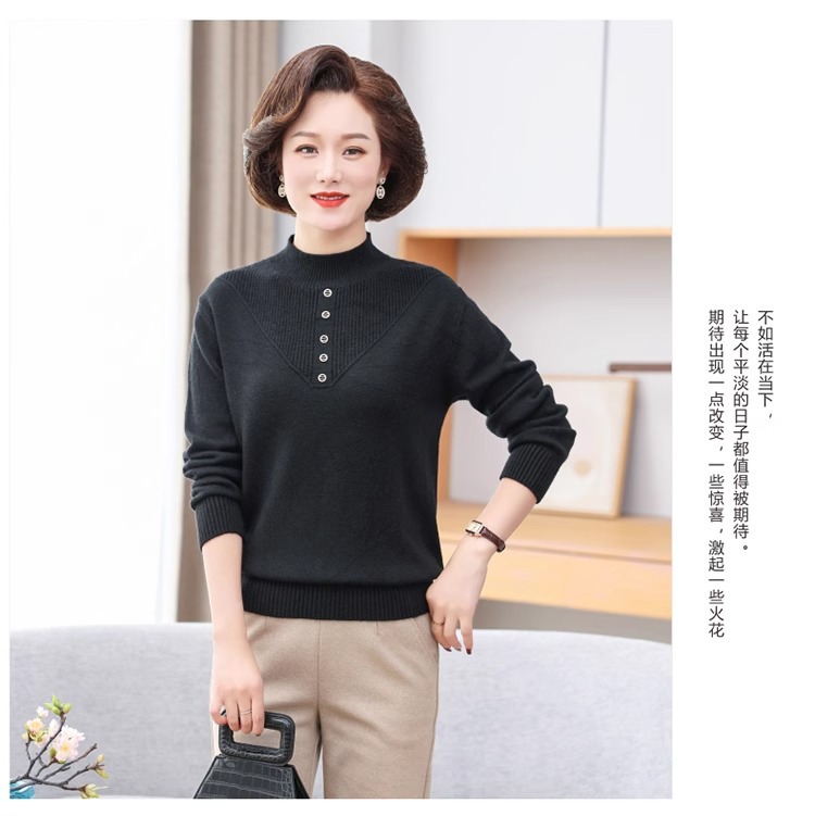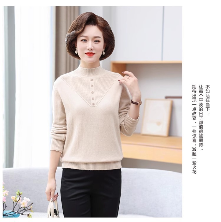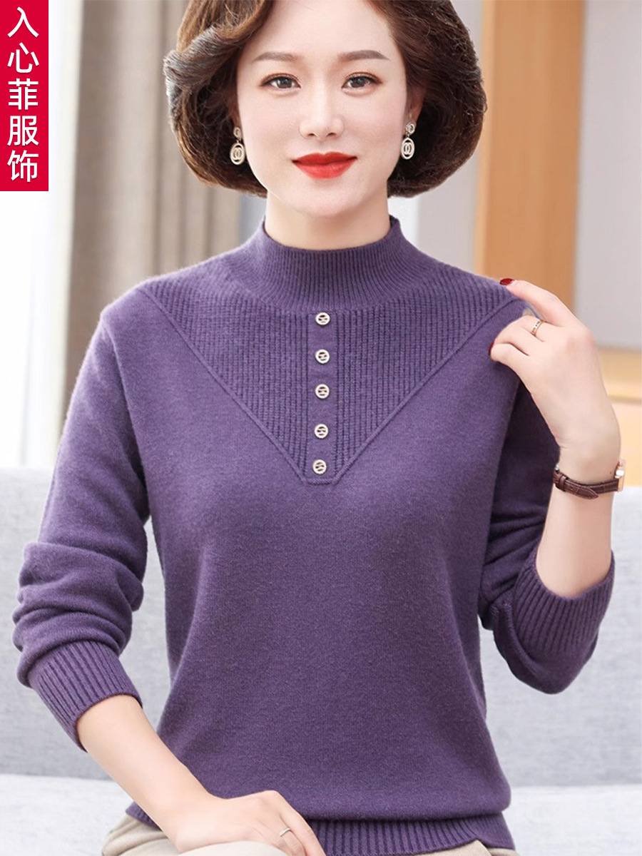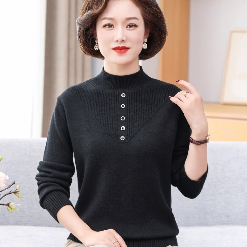 Женский свитер с воротником-стойкой для осени и зимы 2025 года, новая утепленная базовая одежда для женщин среднего и старшего возраста, стильная нижняя рубашка