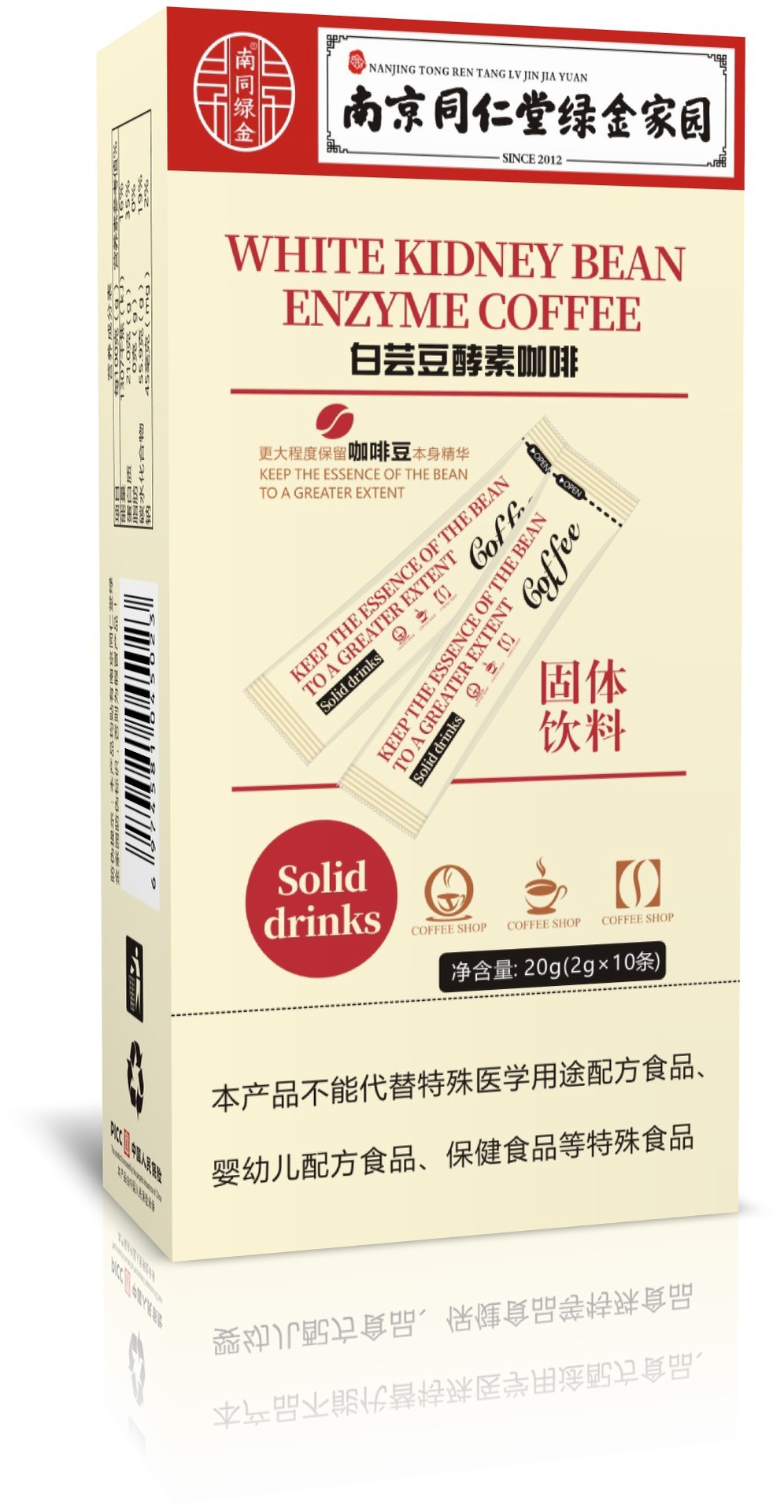 Nanjing Tongrentang White Kidney Bean Enzym Черный кофе 2г х 10шт.; Модернизированная версия кофе в зернах белых нирок, 2 гx20 упаковок; Белые зерна почек, сублимированный черный кофе, 2гх50 упаковок