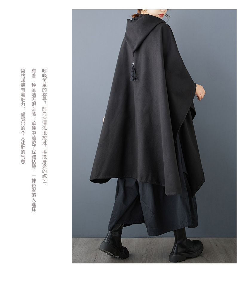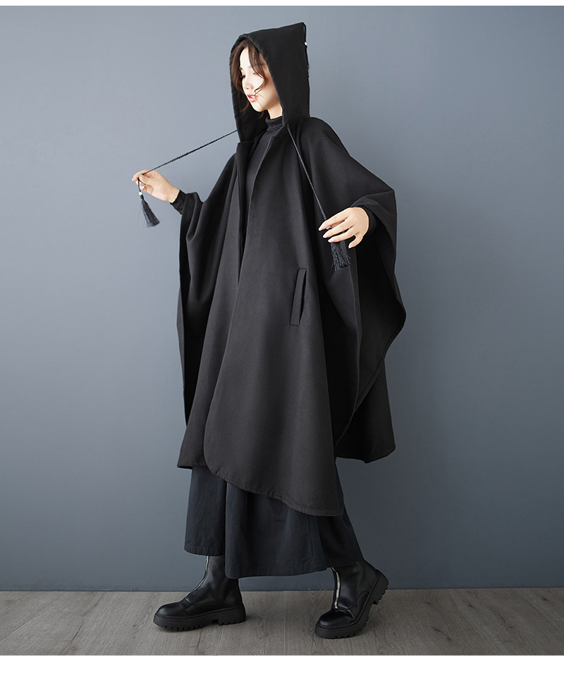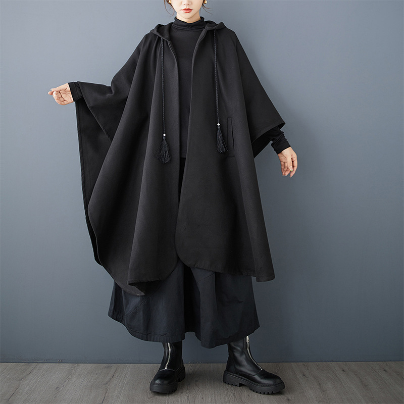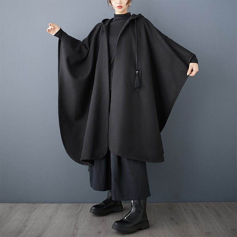 Рекорд 2024 осень-зима новый свободный темный темный нерегулярный дизайн с капюшоном плащ шерстяной плащ плащ плащ