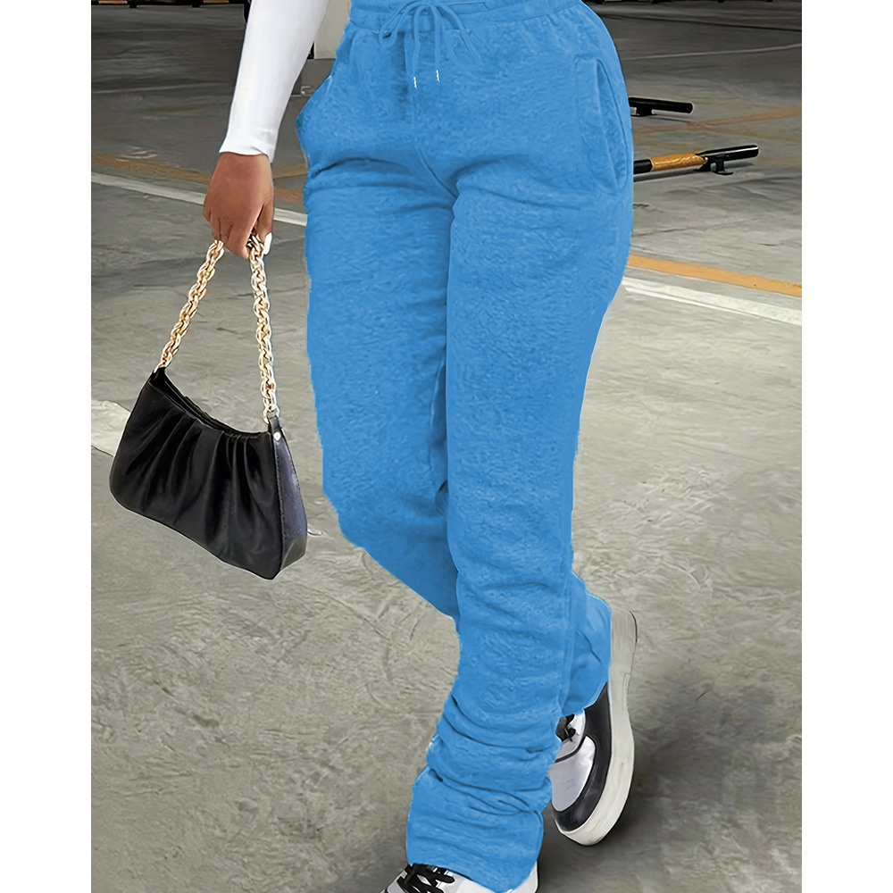 3555 сплошной цветной стек-кучи, задние брюки, весенние и летние повседневные широкие брюки, женская стек-кучи
