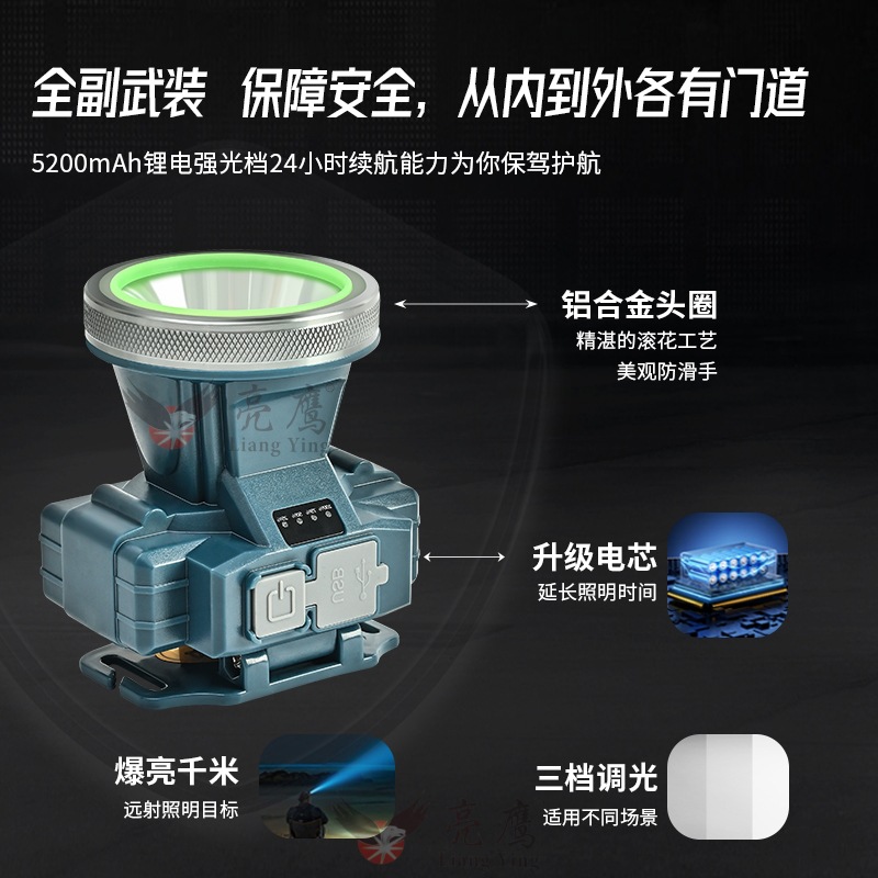 Сильный свет фары перезаряжаемая шахтерная лампа литиевая сверхяркая голова дальнего света Открытый рыболовный фонарь домашний фонарик освещения