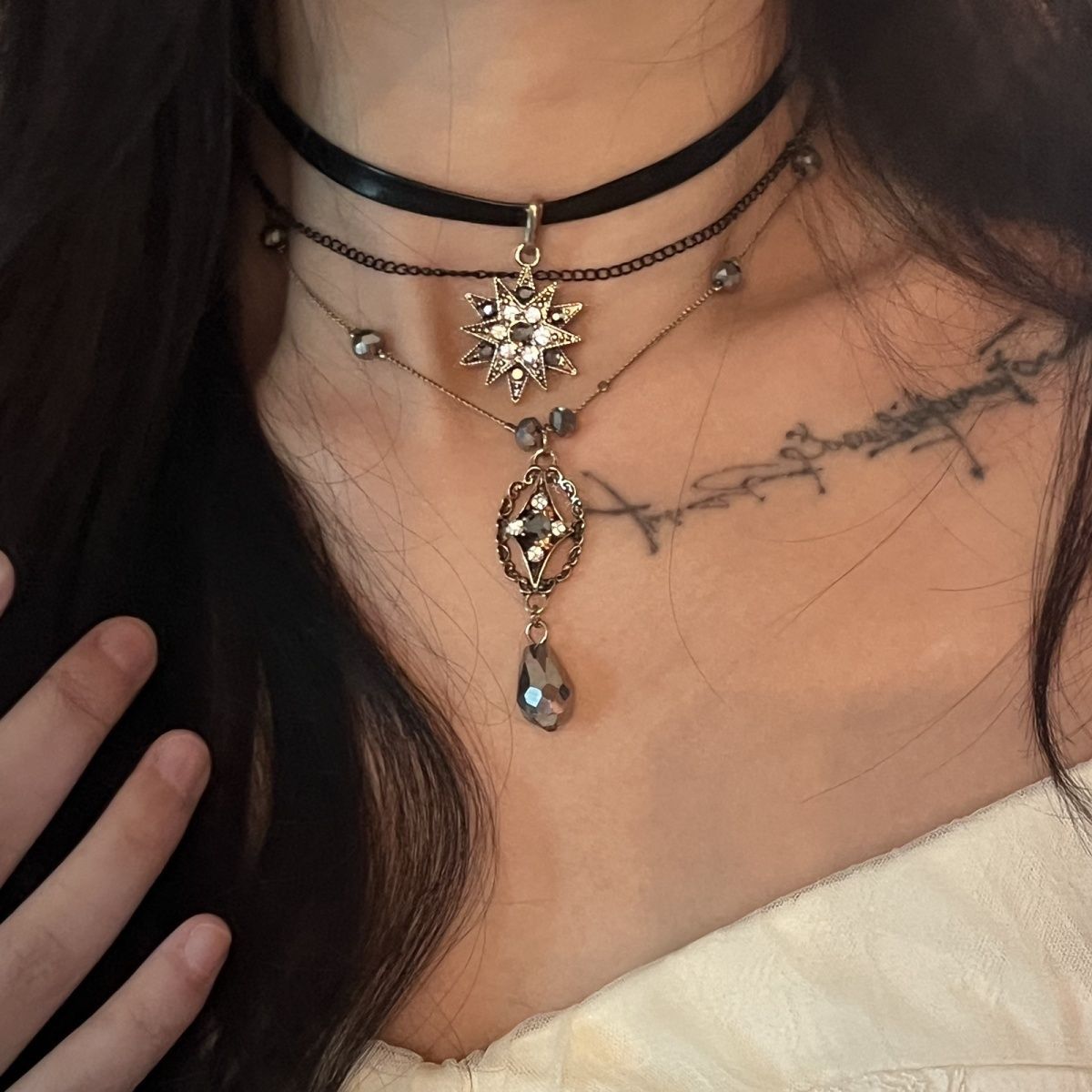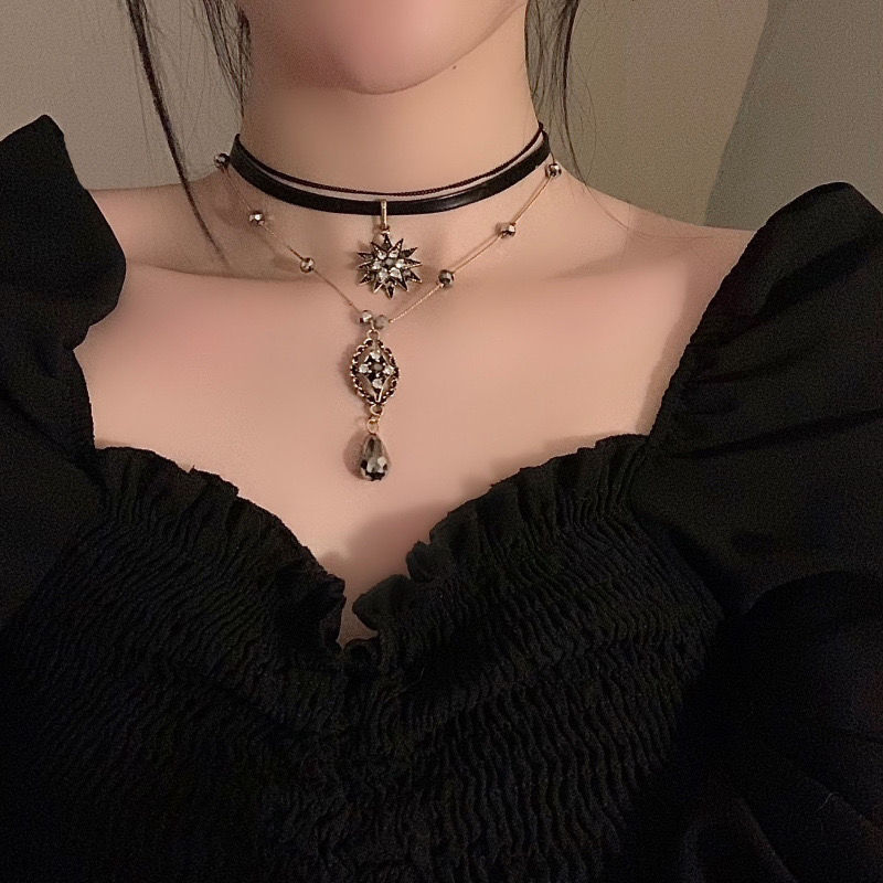 Нишевое темное многослойное вырезное барочное ожерелье женское ретро choker темперамент принцесса экзотический стек с цепочкой ключицы