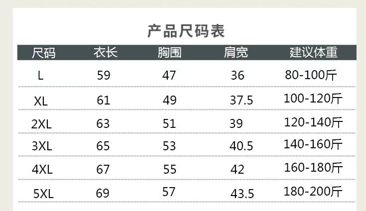 男款:2XL 120-140 斤 3XL 140-160斤 4XL 1620-180斤 5XL 180-200斤
