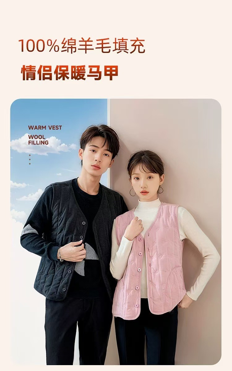 Шерстяной жилет для мужчин и женщин, на флисовой подкладке, большого размера, теплый и морозостойкий, с V-образным вырезом, из плотного хлопка, в стиле кэжуал для трансграничной торговли.