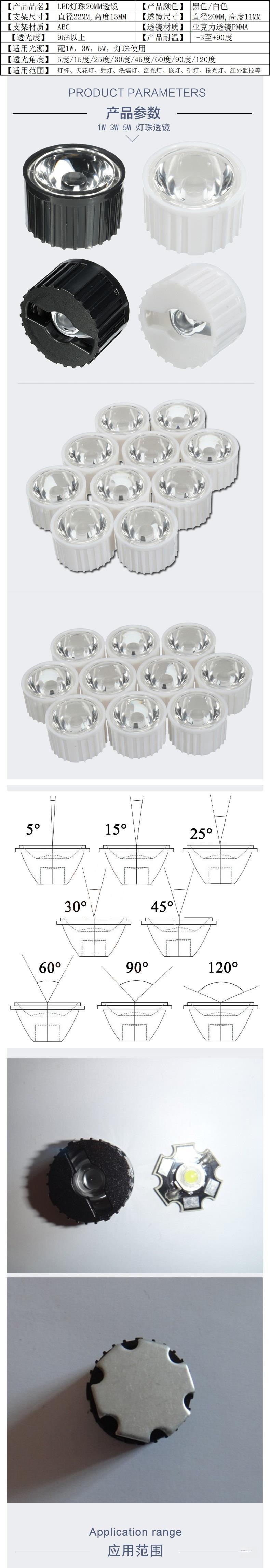 Стекловая чашка LED1W3W5W шариковый линза 20mm1 5/25/30/45/60/90 градусов 120 ° плоский абажур
