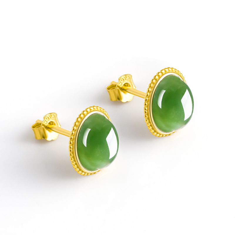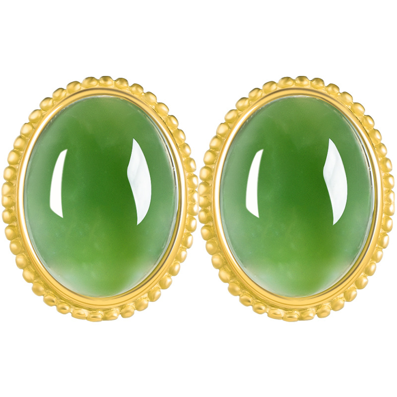 Аутентичный шпинат зеленый натуральный старый материал Hetian Jade Jagyu серьги для женщин S925 Серебряный инкрустированный нефритовый темперамент простой серьги
